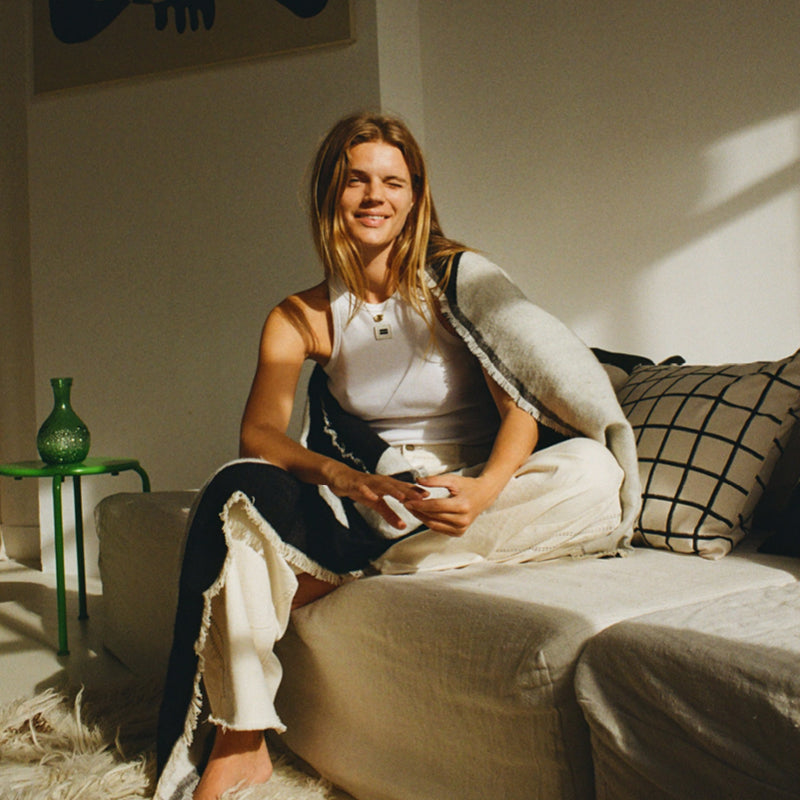 Ik hou van warmere kleuren die we associëren met de herfst en winter, het inspireerde mij voor deze samenwerking. Zoals een fijne, maar stormachtige wandeling in het bos of op het strand en daarna thuiskomen in een warm huis. Lekker op de bank kruipen met natuurlijk: het plaid en de kussens!