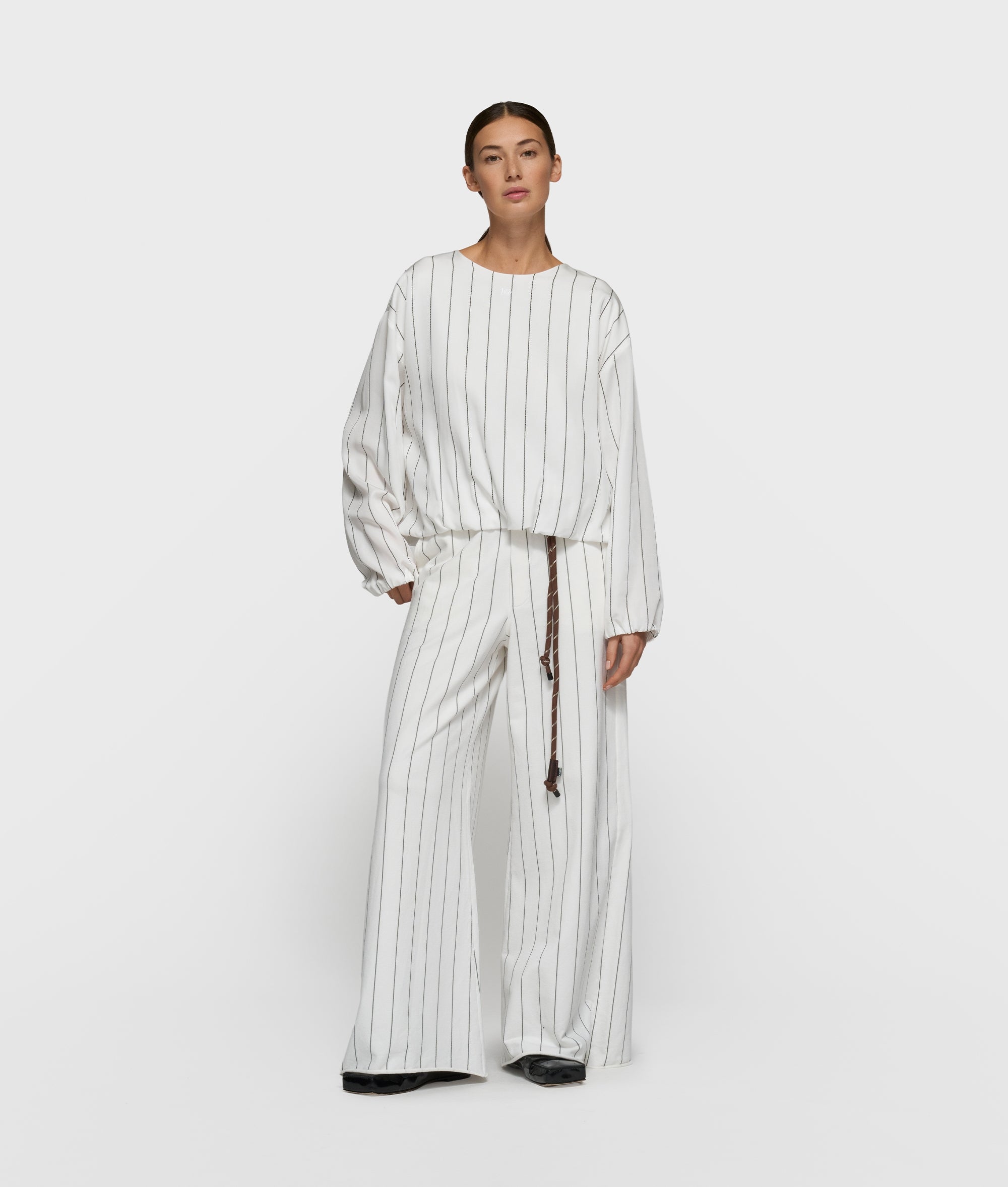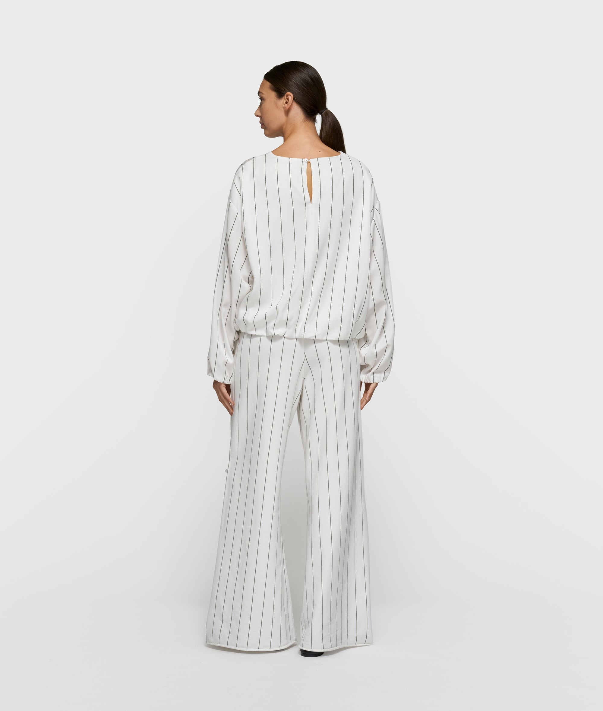 Relaxed fit balloon shape blouse, gemaakt van zachte twill. Voorzien van een voering, geplooide mouwen en een zoom met elastiek, een kleine split met knoopsluiting op de rug en een ‘10’ monogram borduring onder de hals.