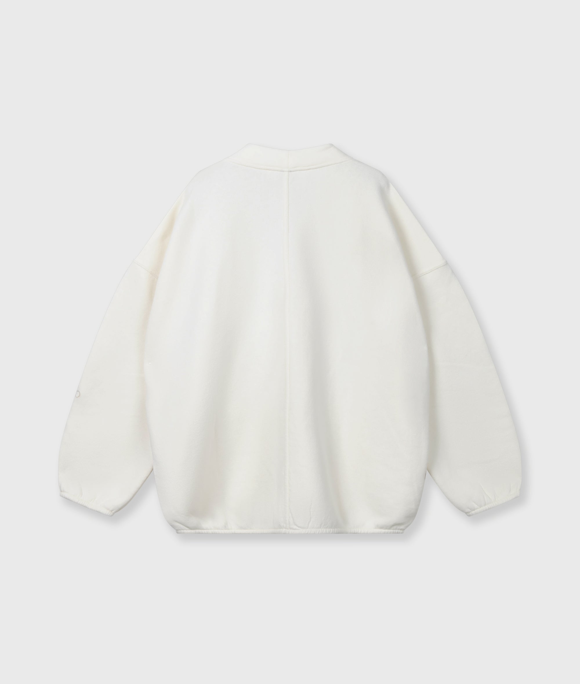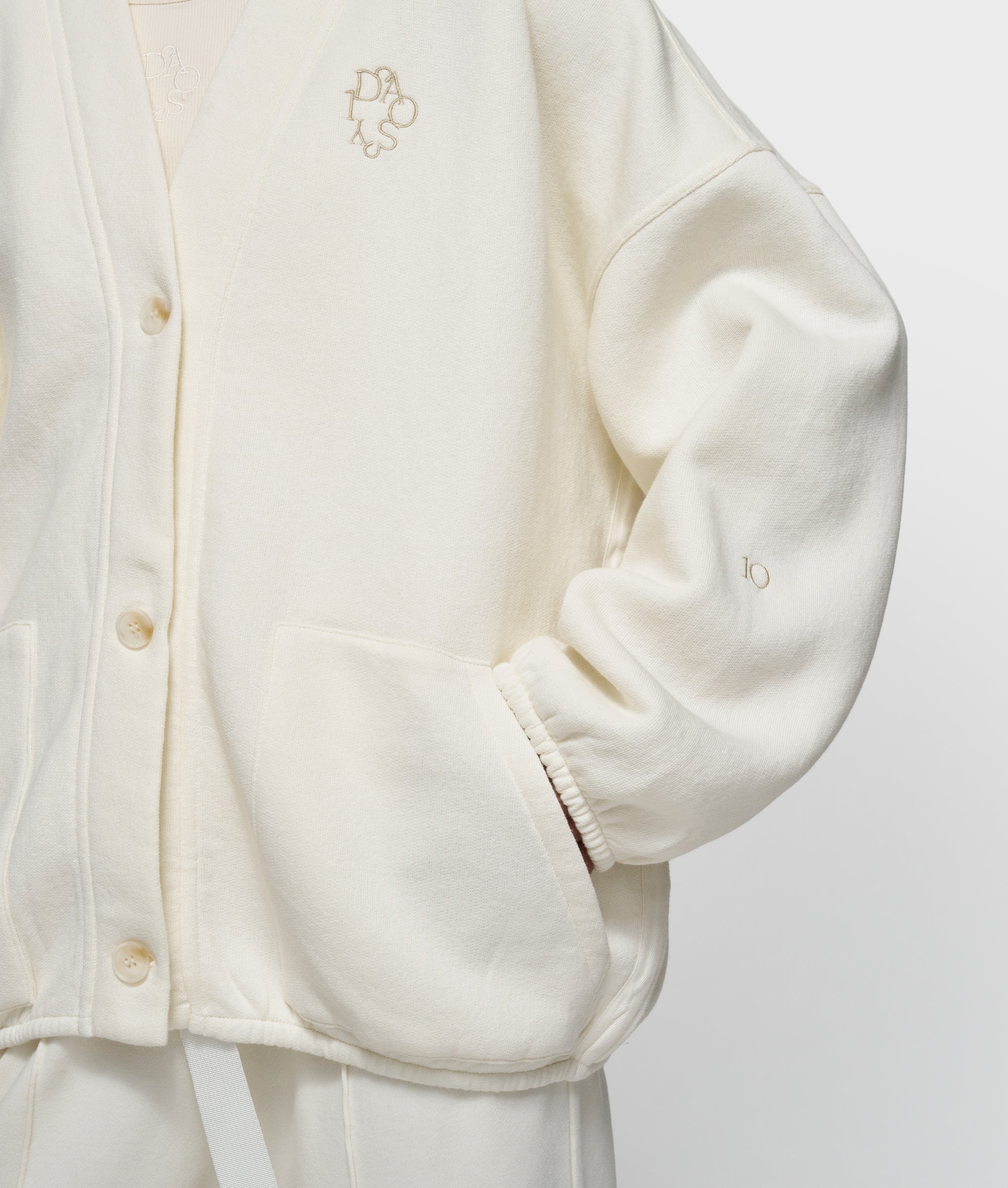 Oversized fit baseball cardigan, gemaakt van zacht katoenen foam fleece. Voorzien van een knoopsluiting met drie knopen, twee opgestikte zakken, een lage schouderinzet, elastische manchetten en zoom, een 'curly 10'-borduring op de linkerborst en een '10' monogram borduring op de linkermouw.
