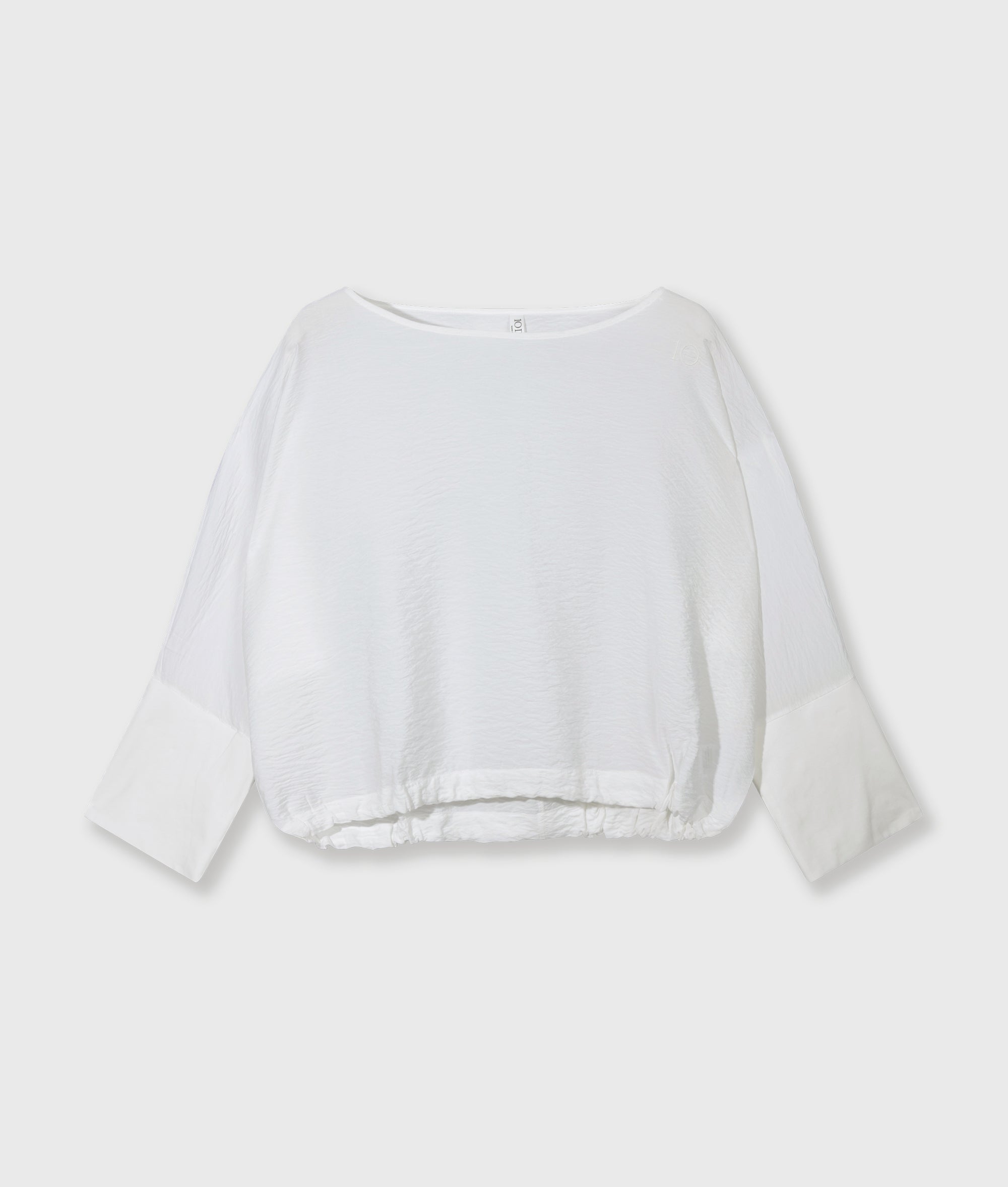 Oversized fit top met vleermuismouwen, gemaakt van shiny crinkle viscose. Voorzien van een ronde hals, een zoom met trekkoord, dubbellaagse manchetten en een ‘10’ monogram borduring op de linkerschouder.