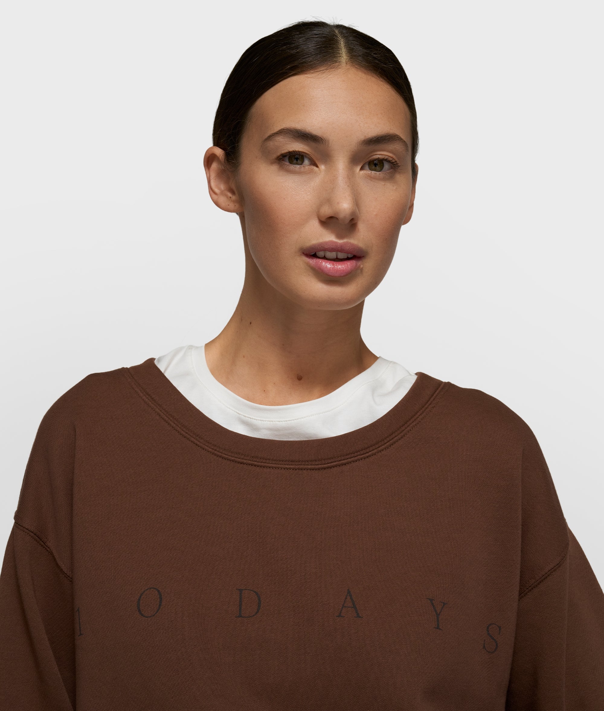Relaxed fit sweater, gemaakt van zacht LA fleece. Voorzien van een ribgebreide ronde hals, kleine zijsplitten, een 'clean 10DAYS' waterprint op de borst en een '10' monogram borduring op de linkermouw.