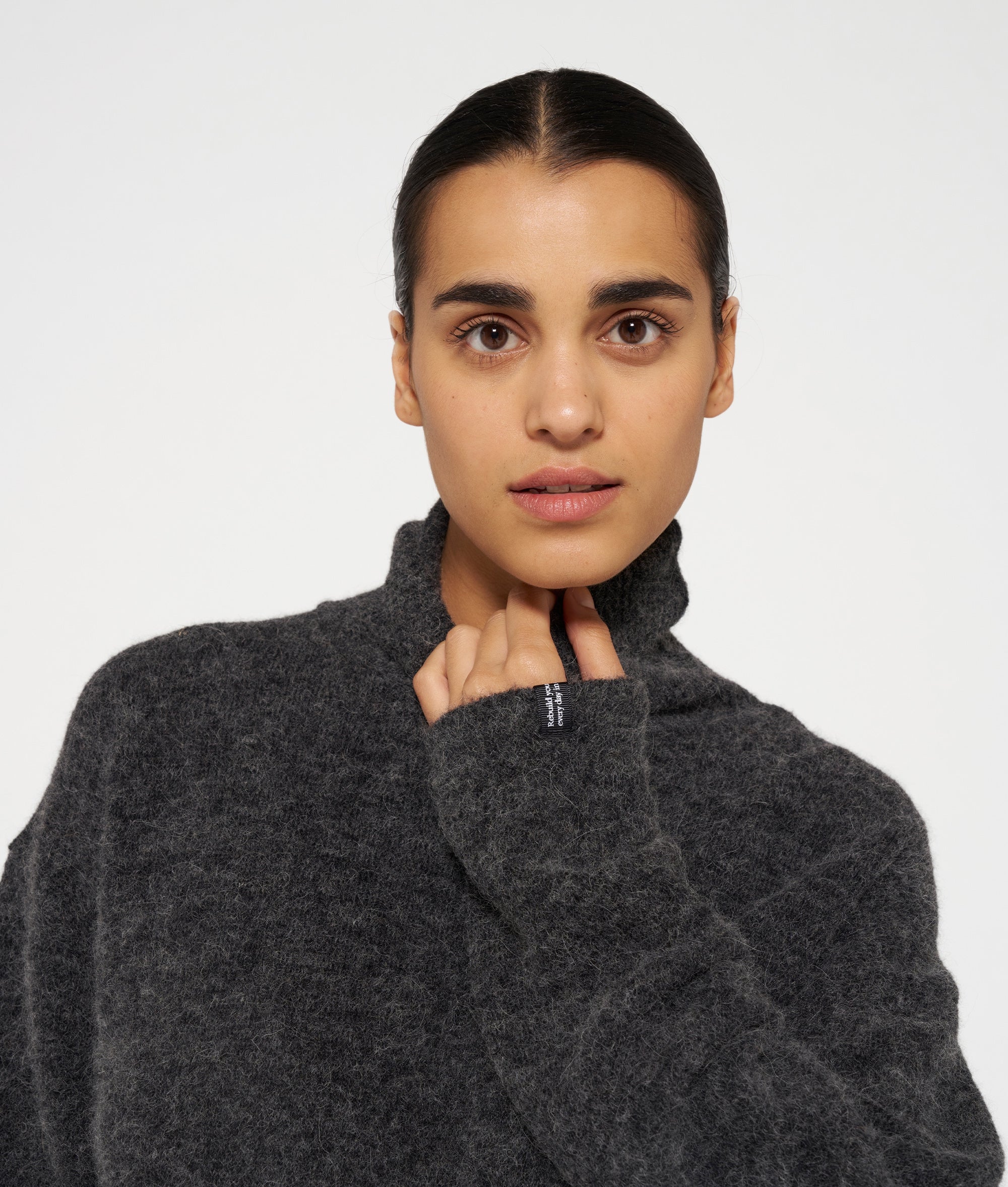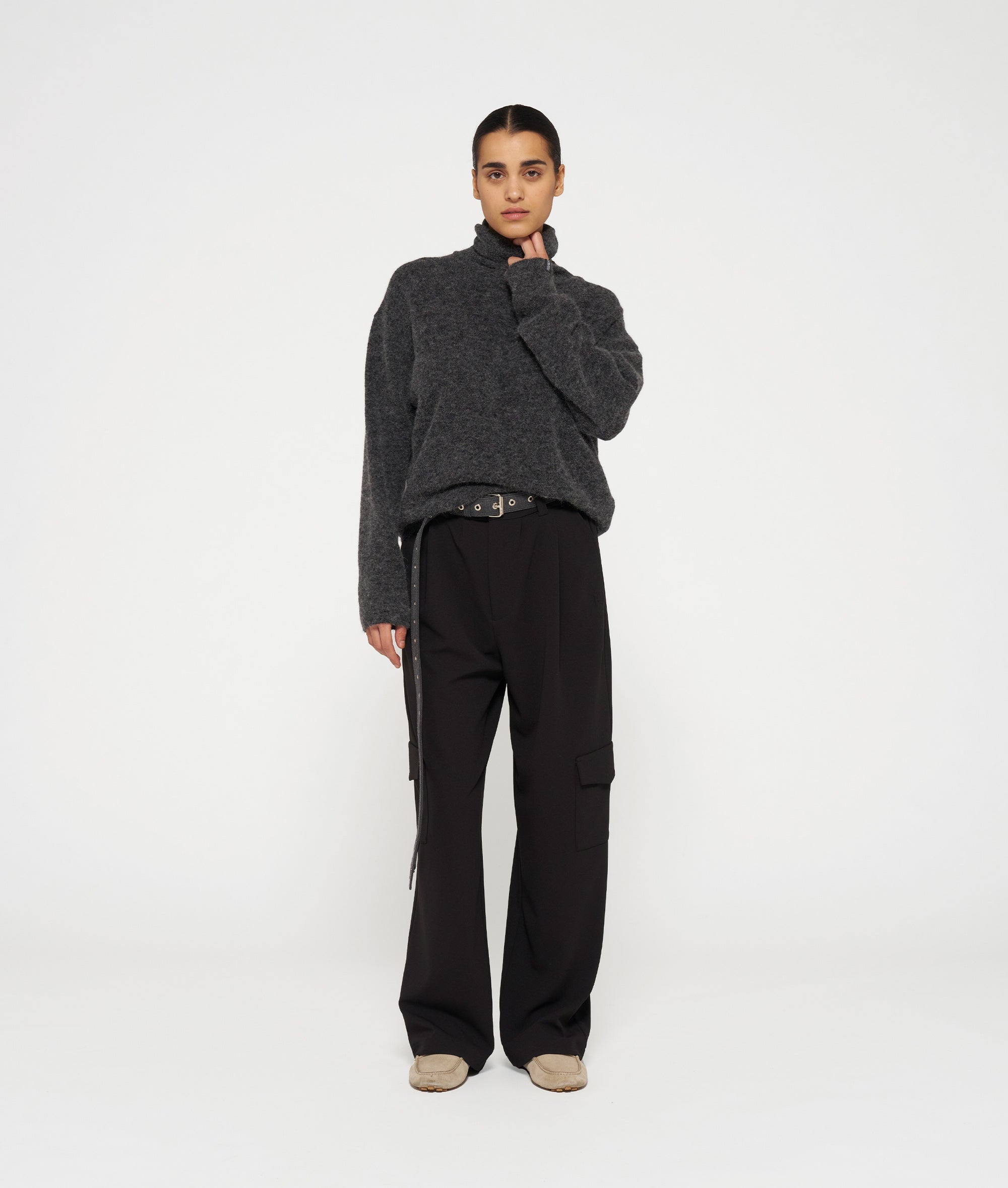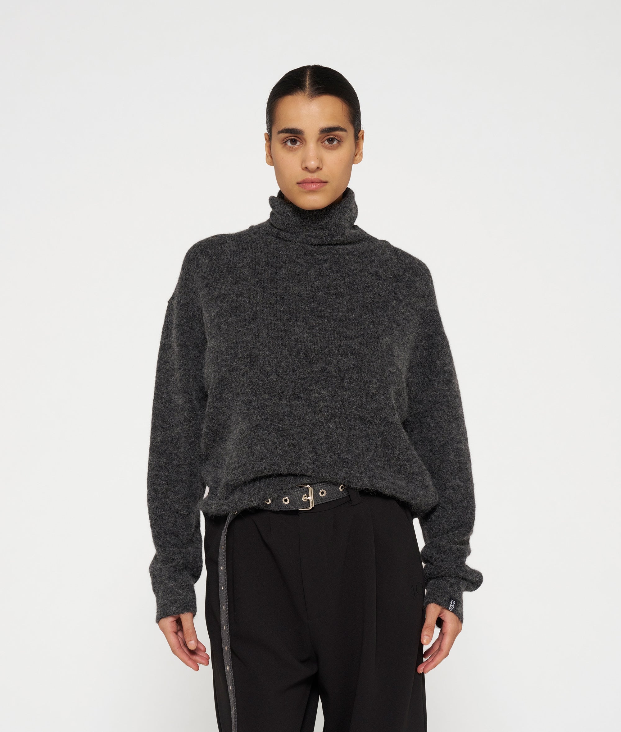 Relaxed fit gebreide coltrui van een zachte alpaca wolblend. Voorzien van ribgebreide boorden, een tagline label onderaan de linkermouw en een '10' monogram borduring op de rug.