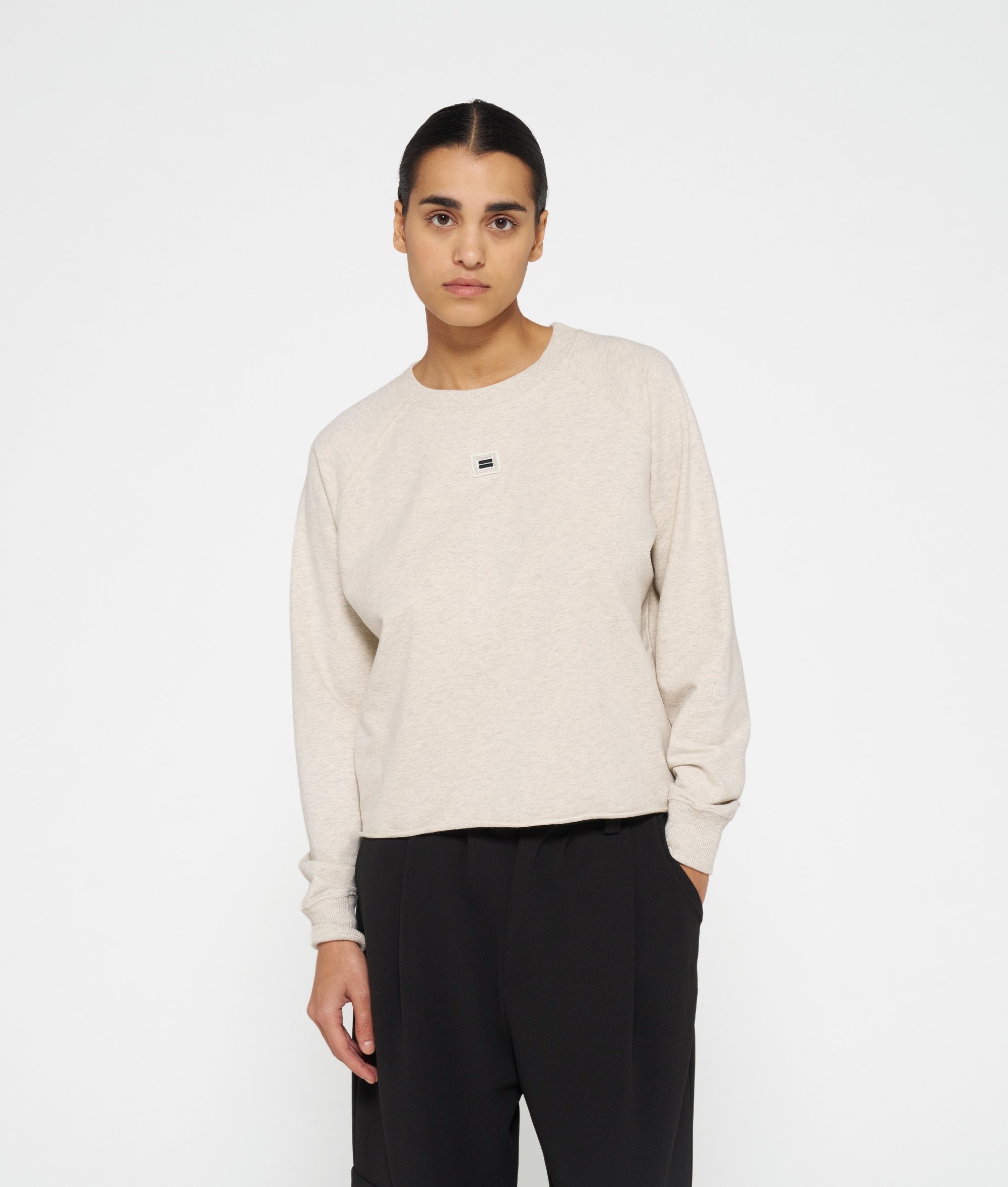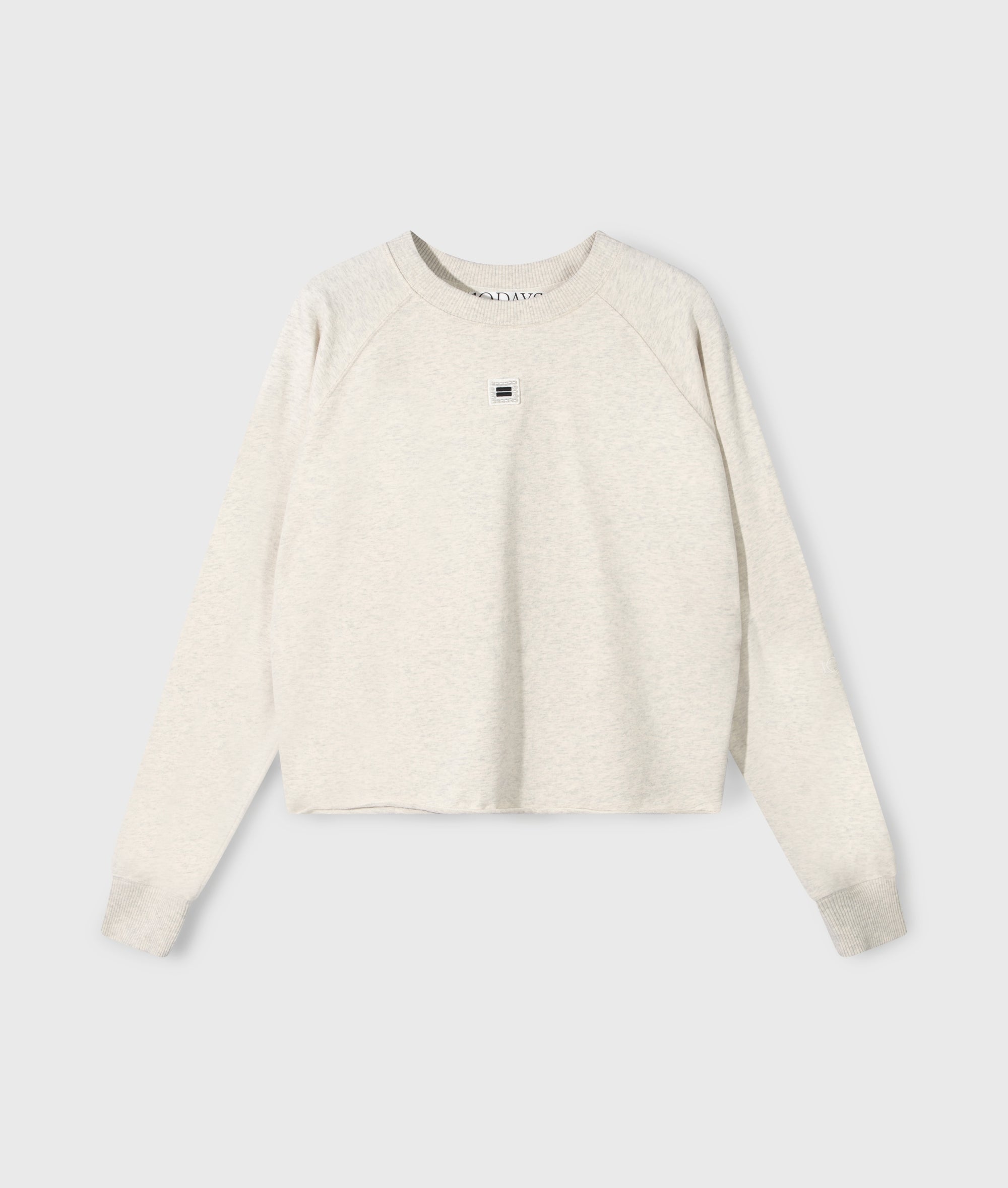 Regular fit crew neck sweater met een parel mini stripes logo patch op de borst, gemaakt van zacht katoenen 10DAYS babyfleece. Voorzien van ribgebreide boorden langs de hals en mouwen, een '10' monogram borduring op de linkermouw en een raw edge zoom.