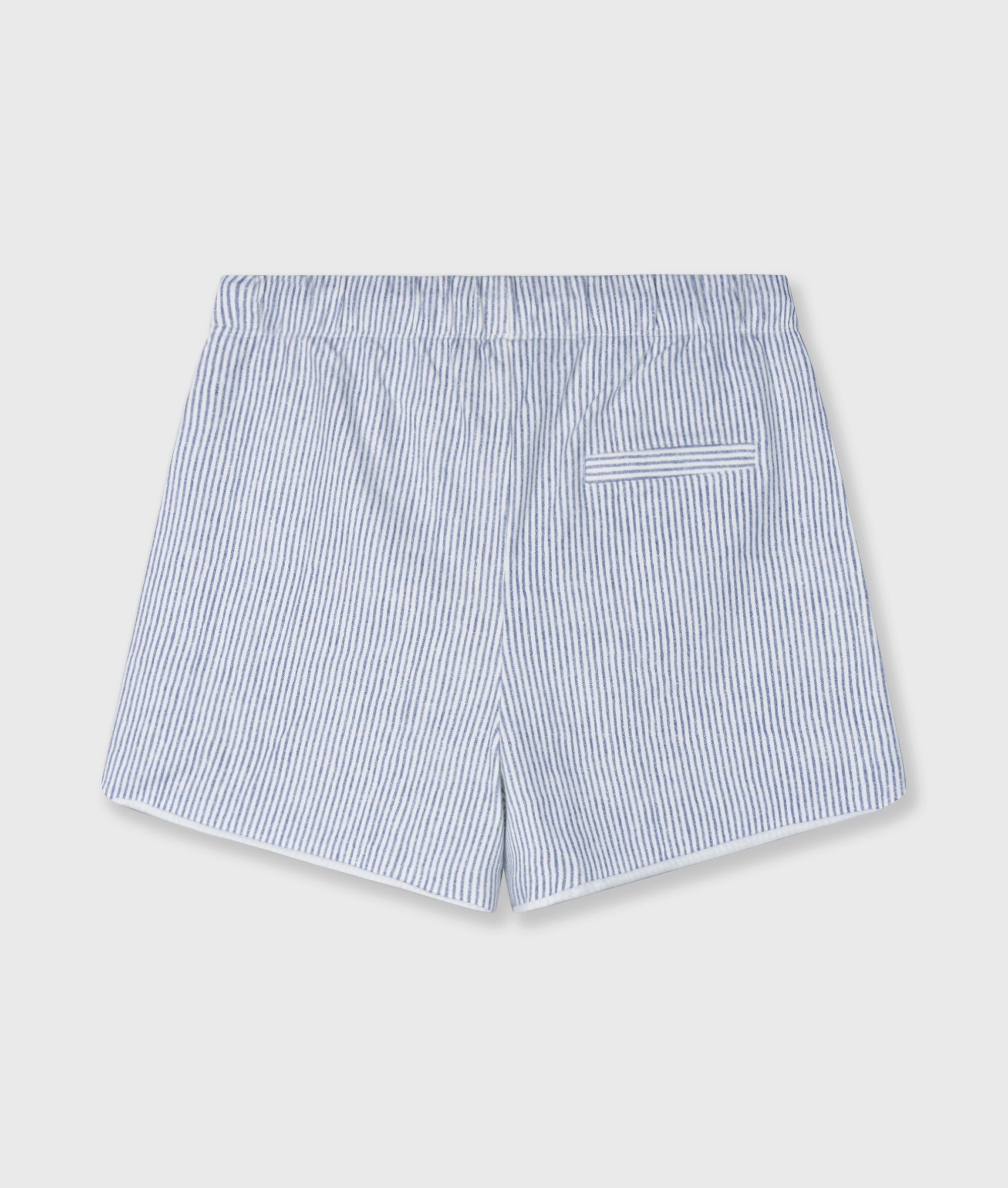 Relaxed fit easy shorts met strepen, gemaakt van zacht GOTS-gecertificeerd biologisch katoen. Voorzien van een elastische tailleband met trekkoord, steekzakken, een raw edge-afwerking aan de onderkant en een ‘10’ monogram borduring onder de linker steekzak.
