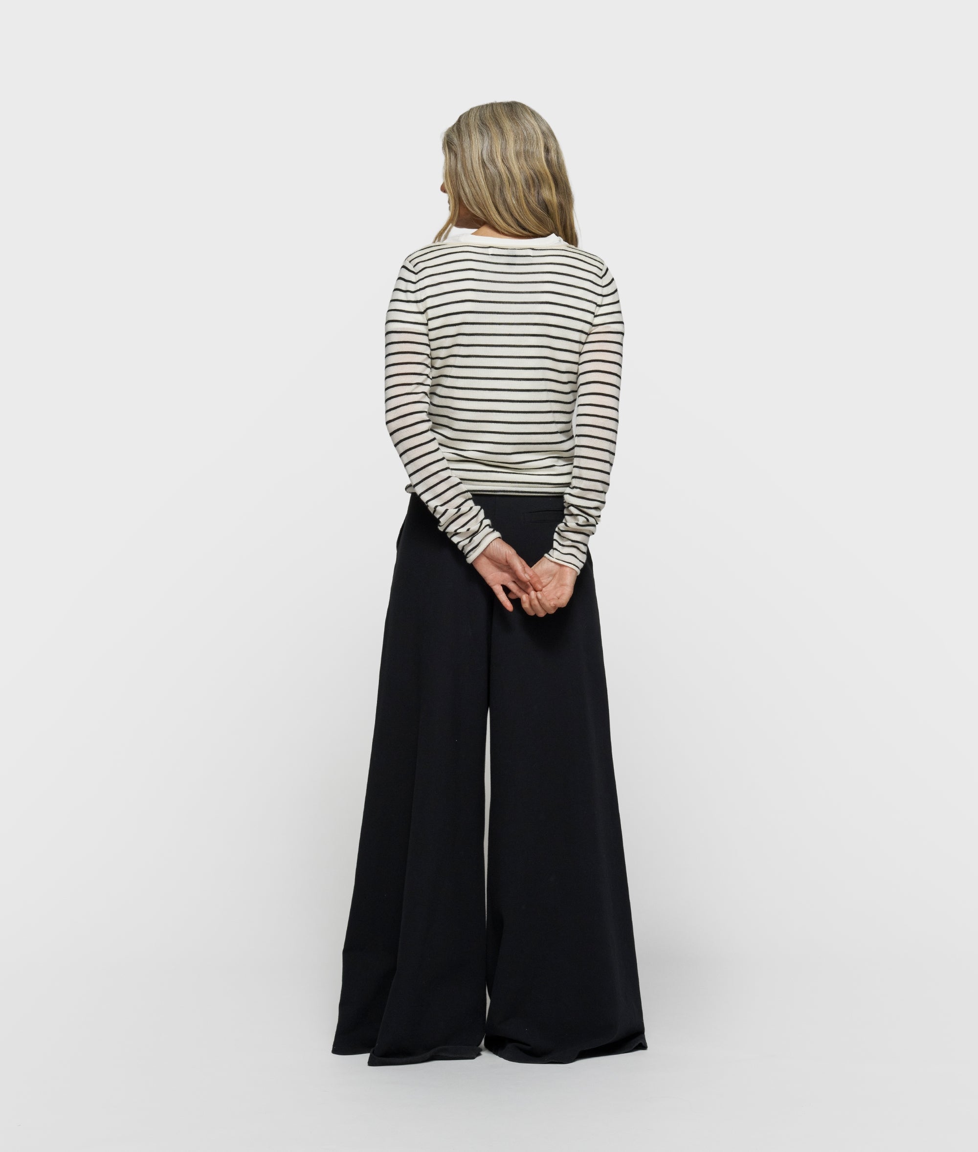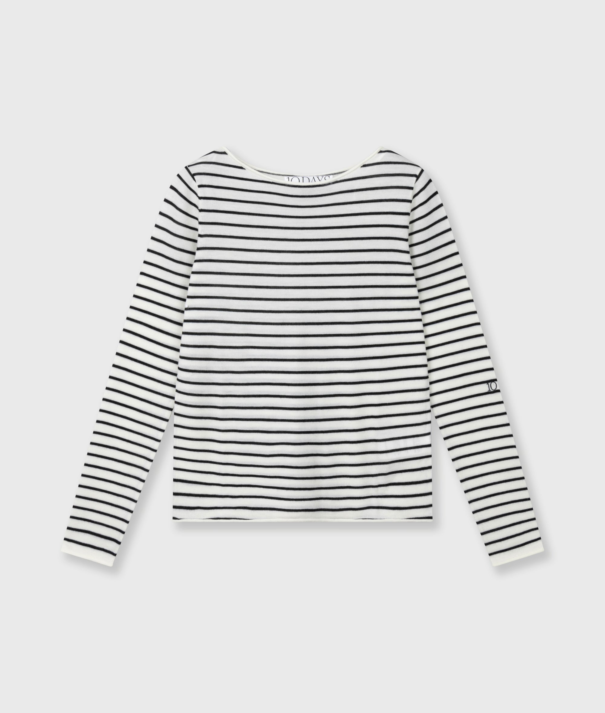 Slim fit fijngebreide trui met strepen, gemaakt van light wool. Voorzien van een ronde halslijn, onafgewerkte zomen bij de hals, mouwen en onderzijde en een ‘10’ monogram borduring op de linkermouw.