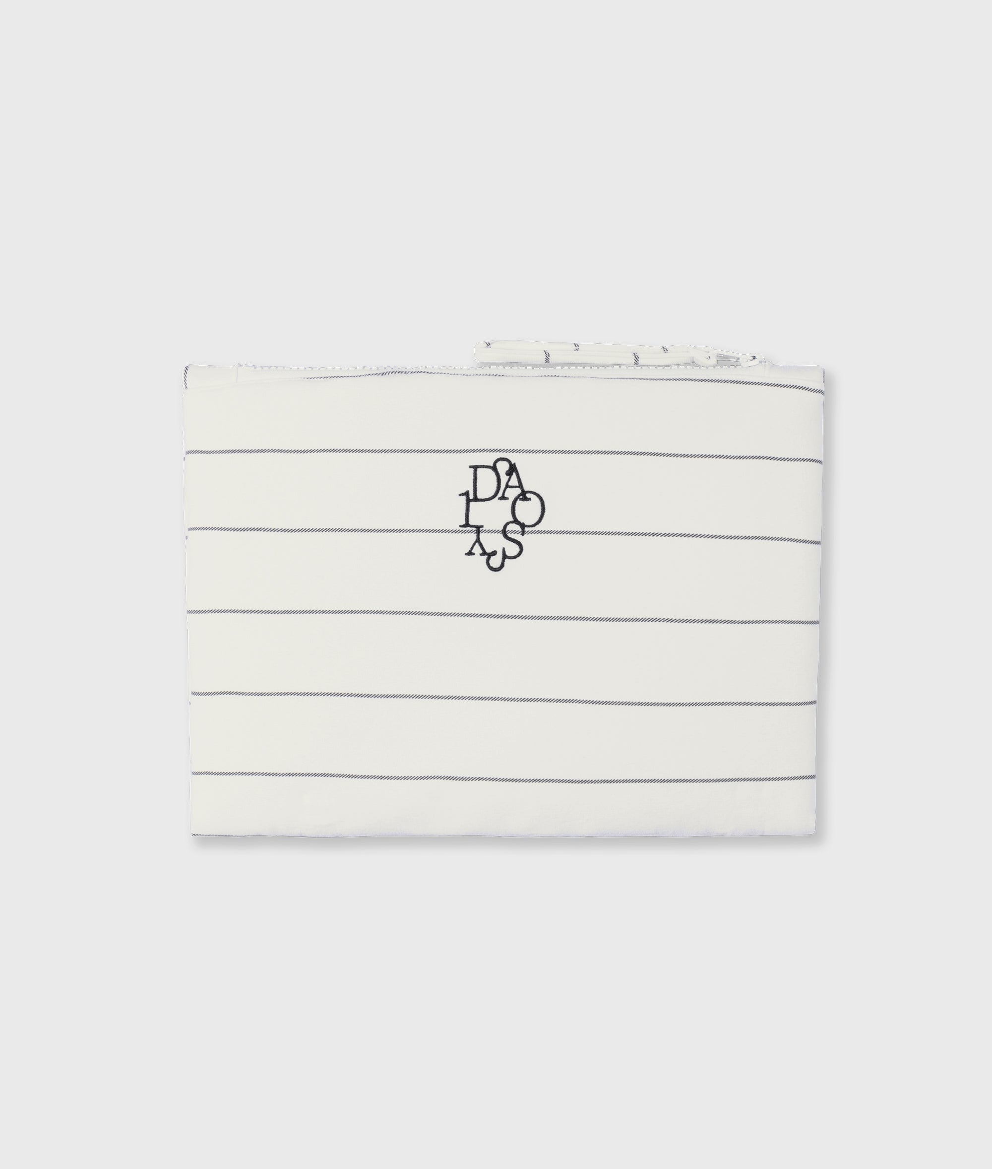 Klein gestreept tasje met ritssluiting en 10DAYS-label, gemaakt van zacht katoenen babyfleece. Ideaal als clutch of make-uptas. Afmeting: 25 × 19 cm.