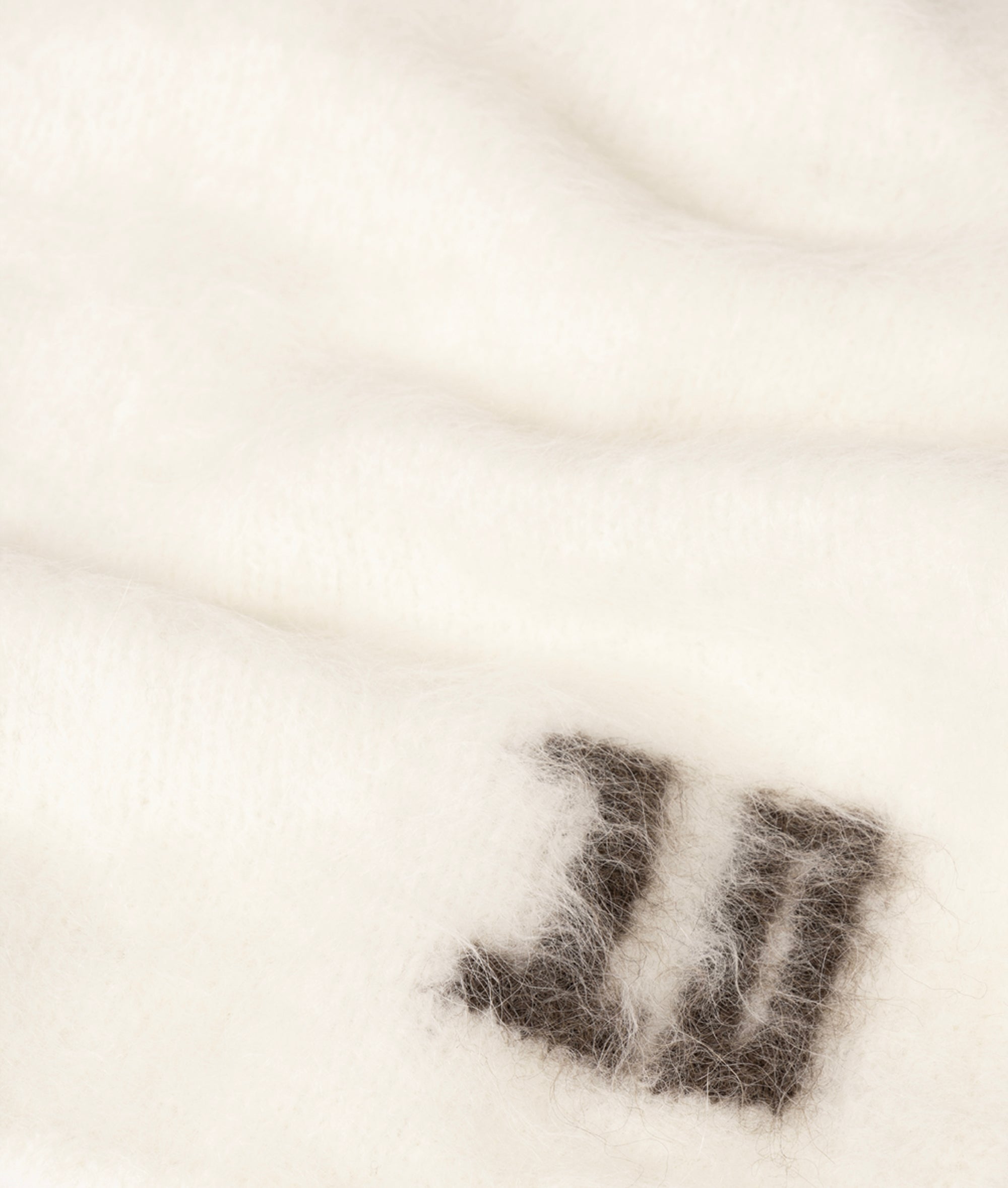 Gebreide bandana sjaal met een ingeweven 'baseball 10' logo, gemaakt van een zachte wolblend. Afmeting: 40 x 85 cm.