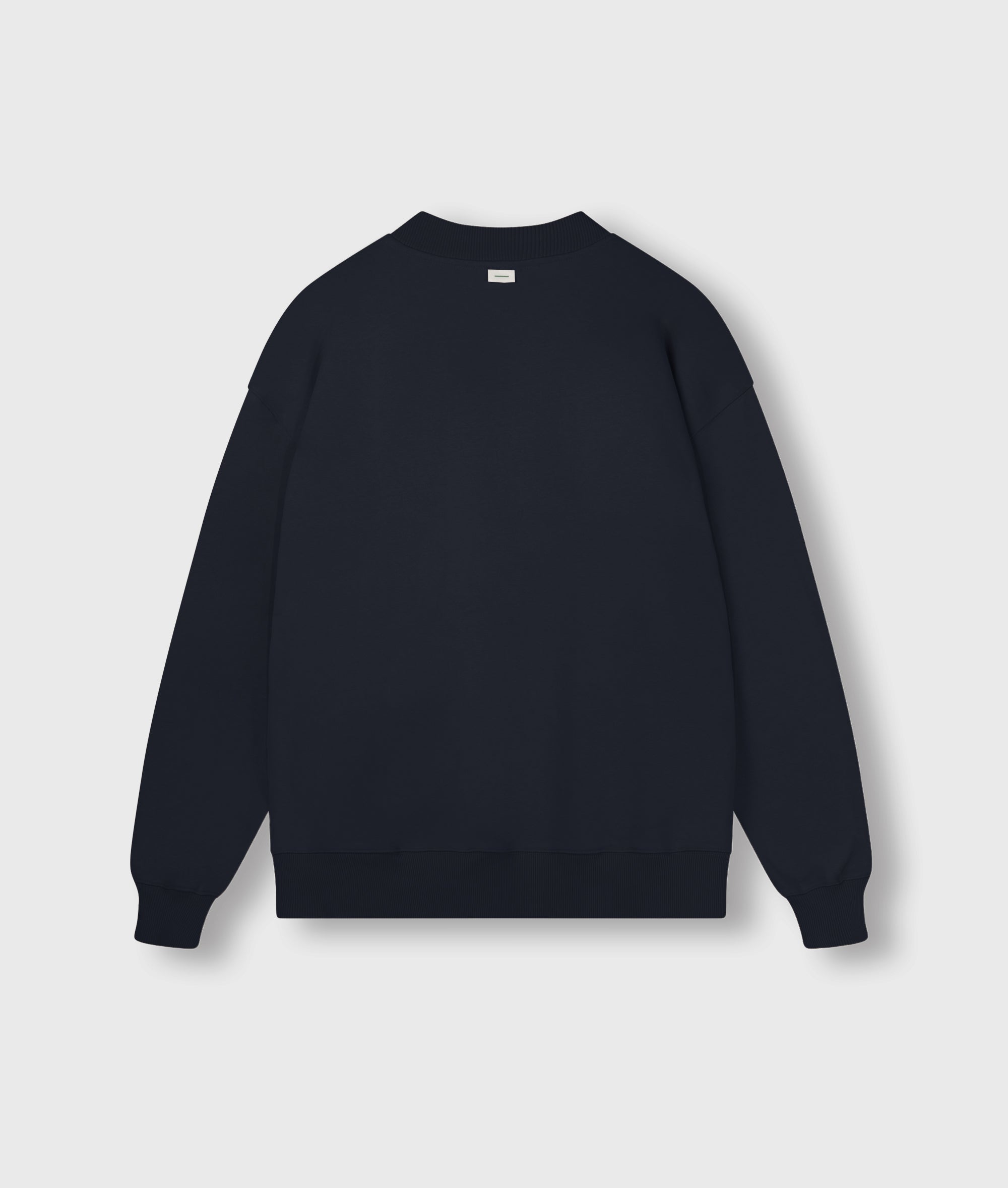 Relaxed fit sweater van heavy katoenen fleece. Voorzien van een ronde ribgebreide hals, een 'T-D' borduring op de borst, ribgebreide manchetten en een ribgebreide zoom met een label aan de voorzijde.