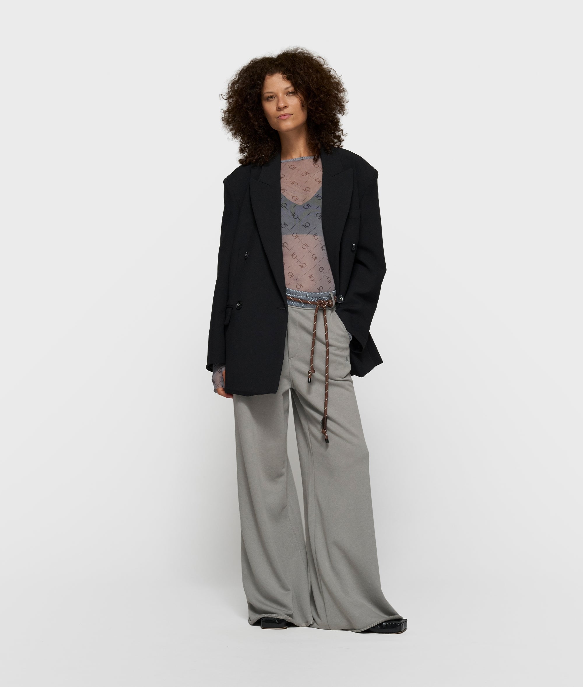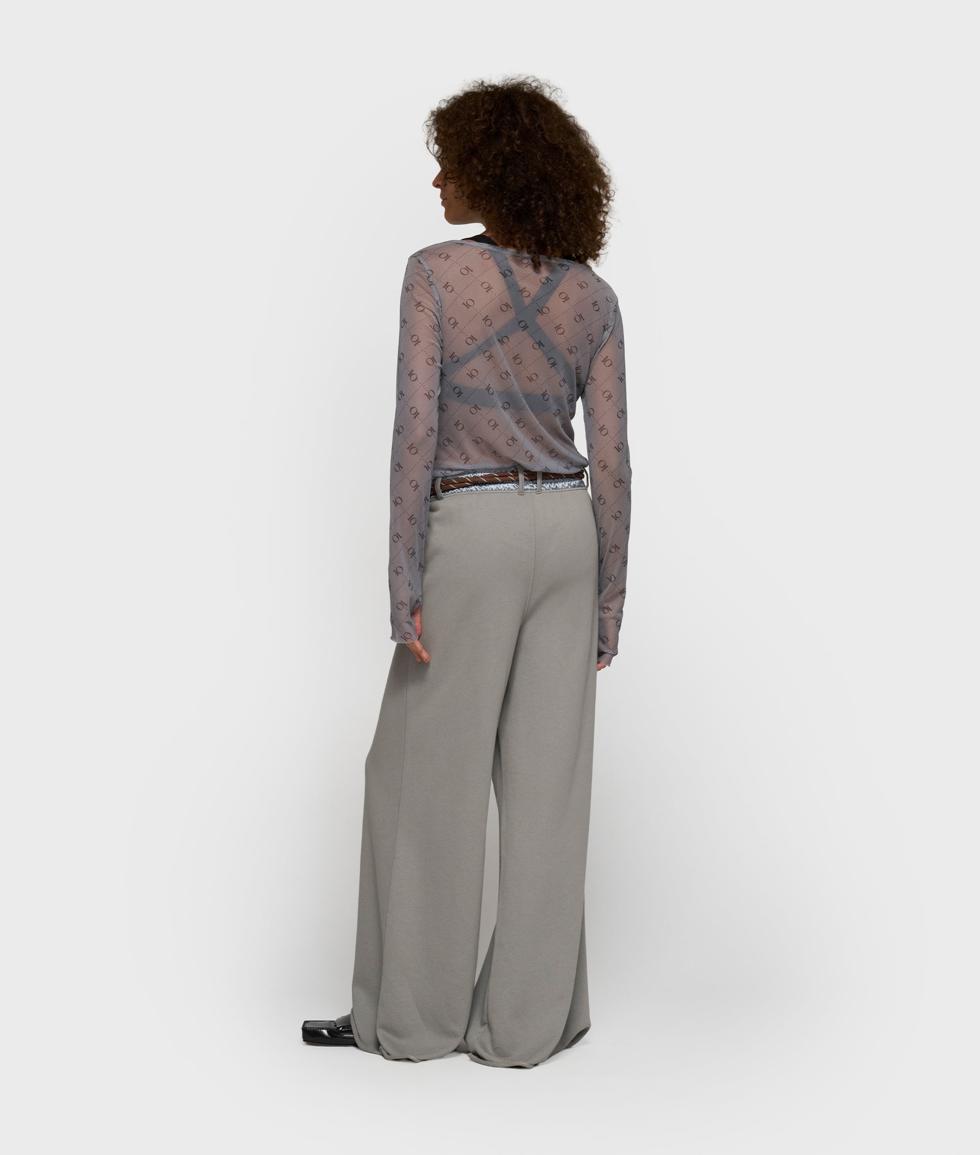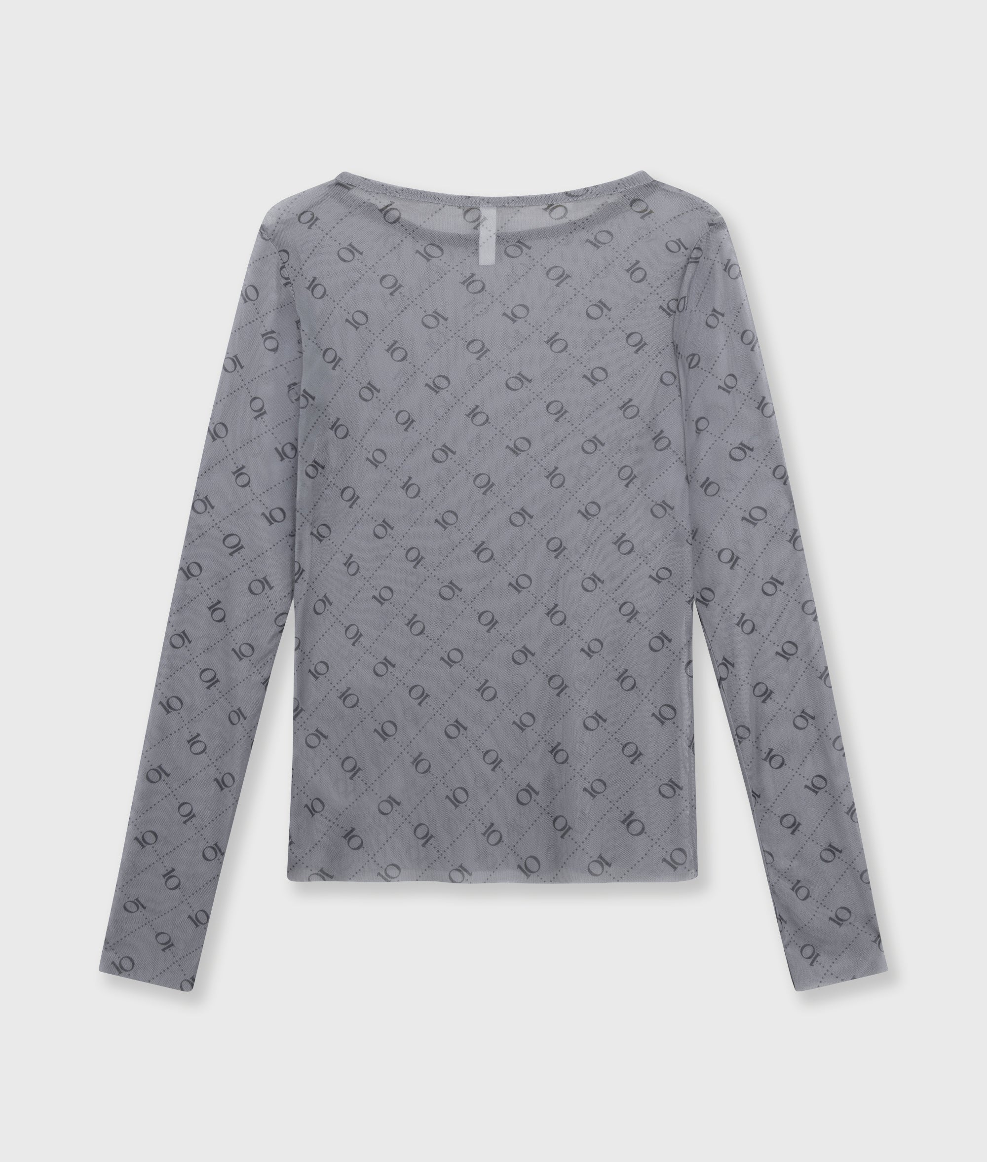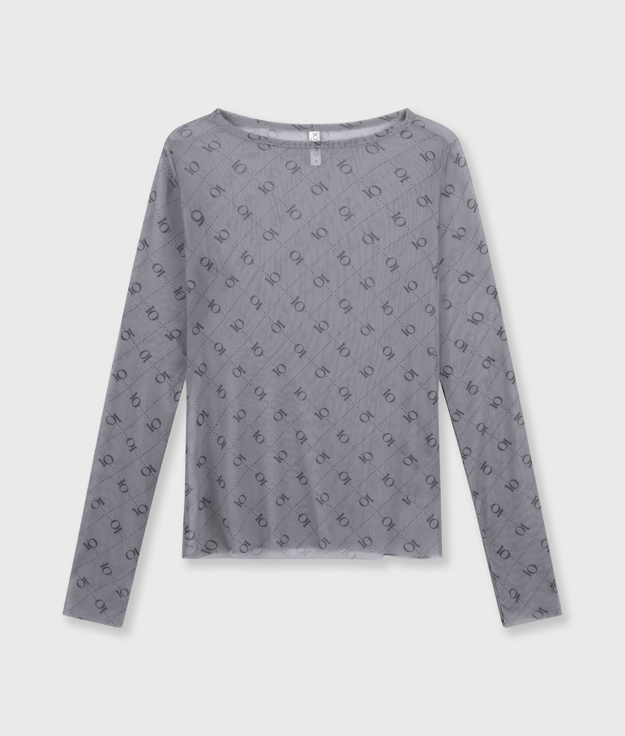 Slim fit transparante longsleeve top, gemaakt van mesh. Voorzien van een brede boothals, lange mouwen met duimsgaten en een raw edge zoom- en mouwafwerking.