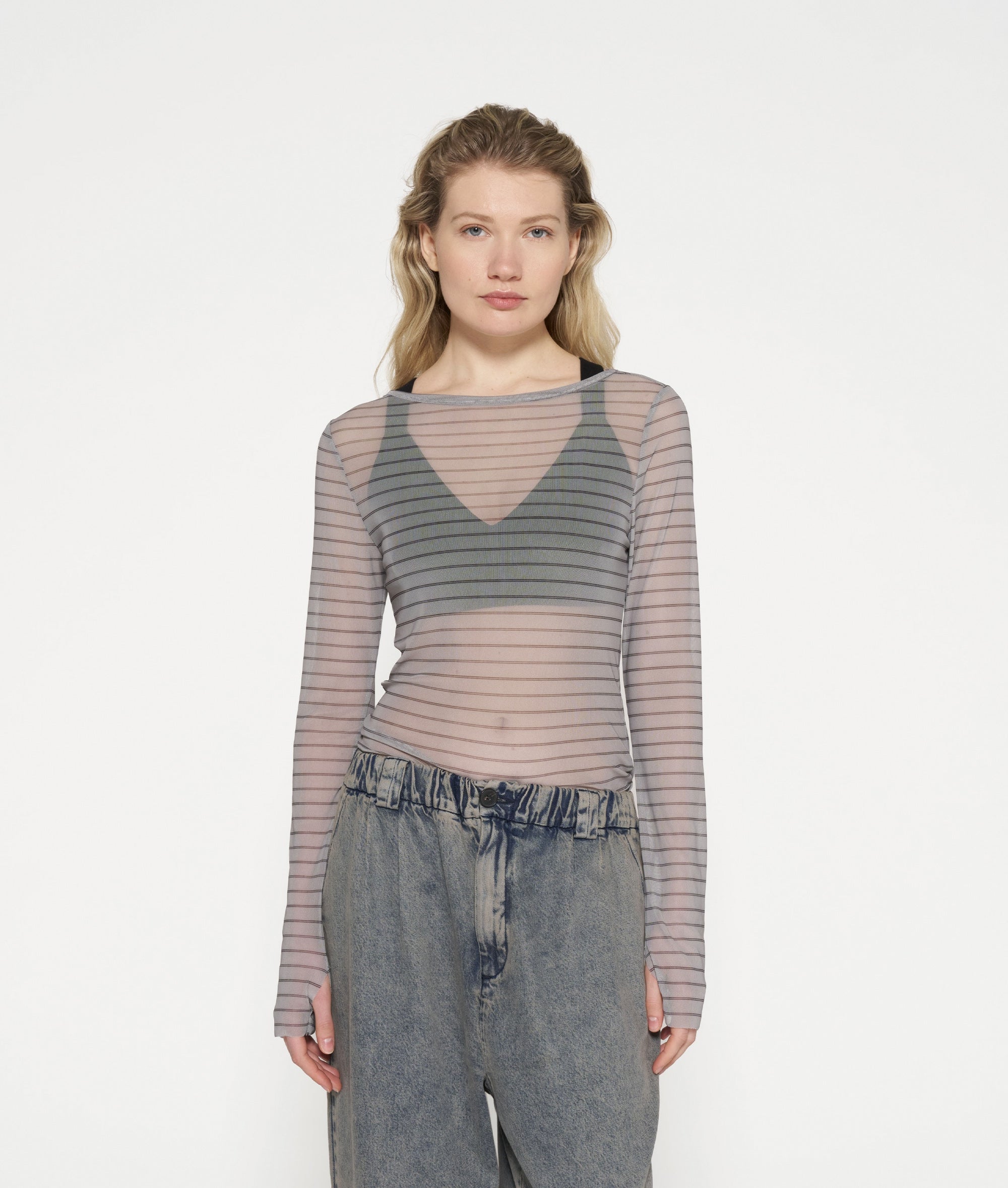 mesh tee pinstripe
