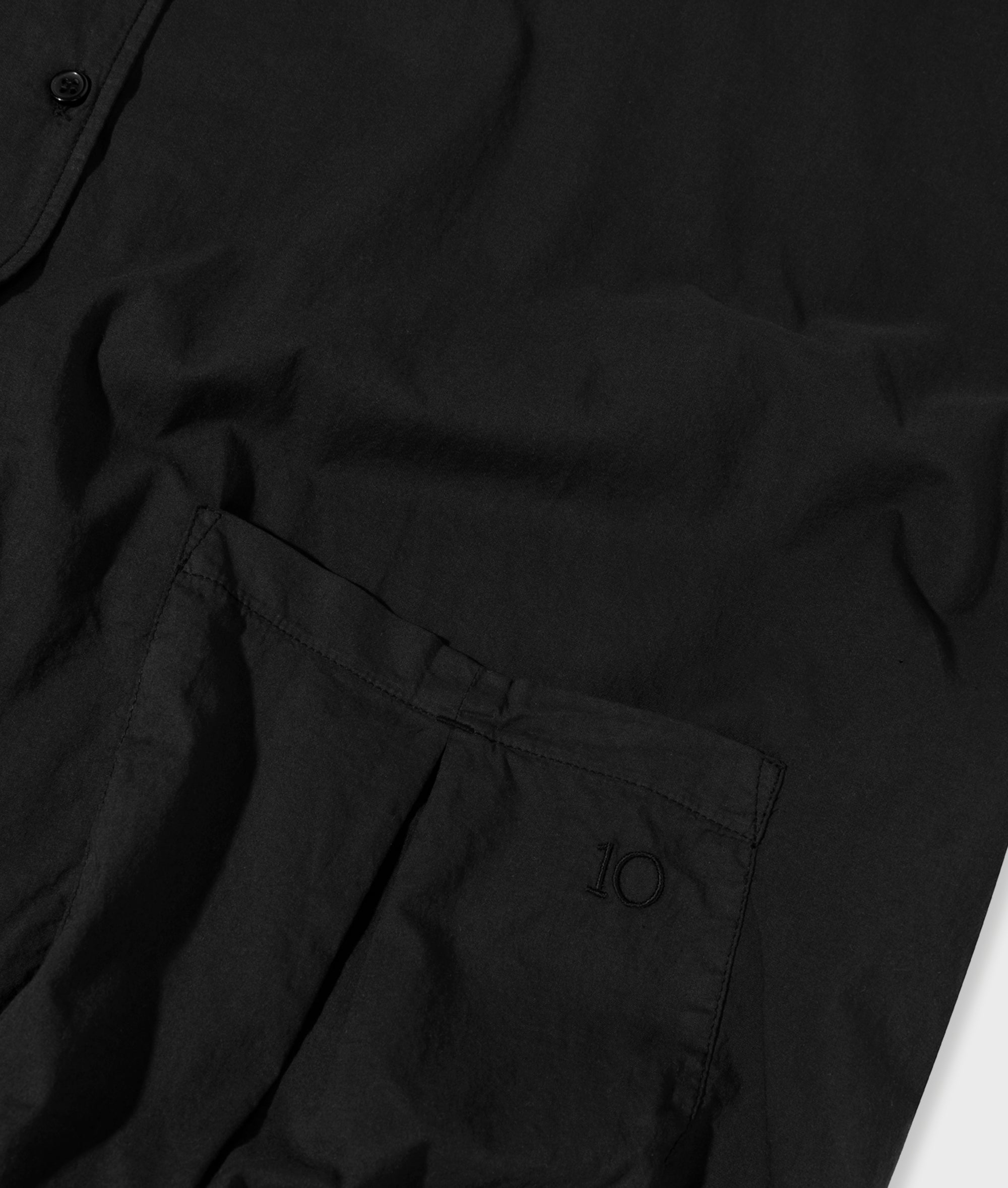 Oversized fit blouse, gemaakt van zacht GOTS-gecertificeerd biologisch katoenen poplin. Voorzien van korte mouwen, een elastische zoom, een knoopsluiting, een opgestikte zak met ‘10’ monogramborduring en een klein transparant label op de rug.