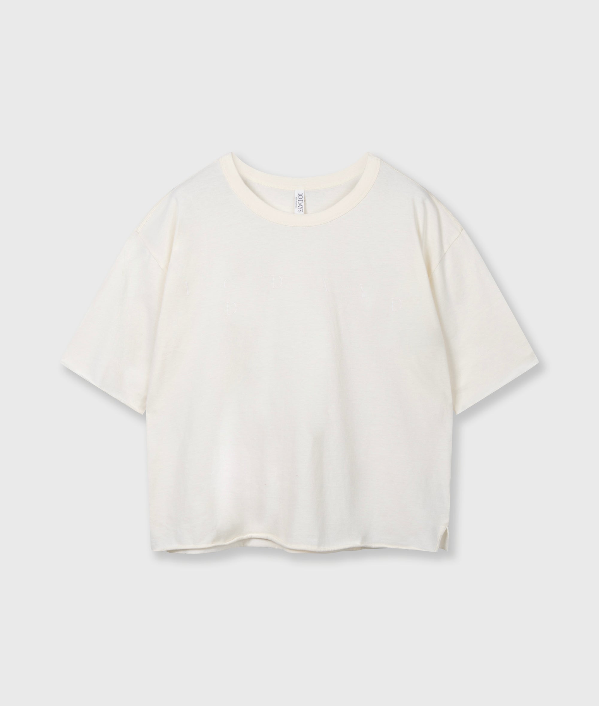 Relaxed fit T-shirt, gemaakt van GOTS-gecertificeerd biologisch katoen. Voorzien van een ronde ribgebreide hals, een 'clean 10DAYS' waterprint op de borst, raw edge schoudernaden en zoom, en een mini-stripes borduring op de rug.