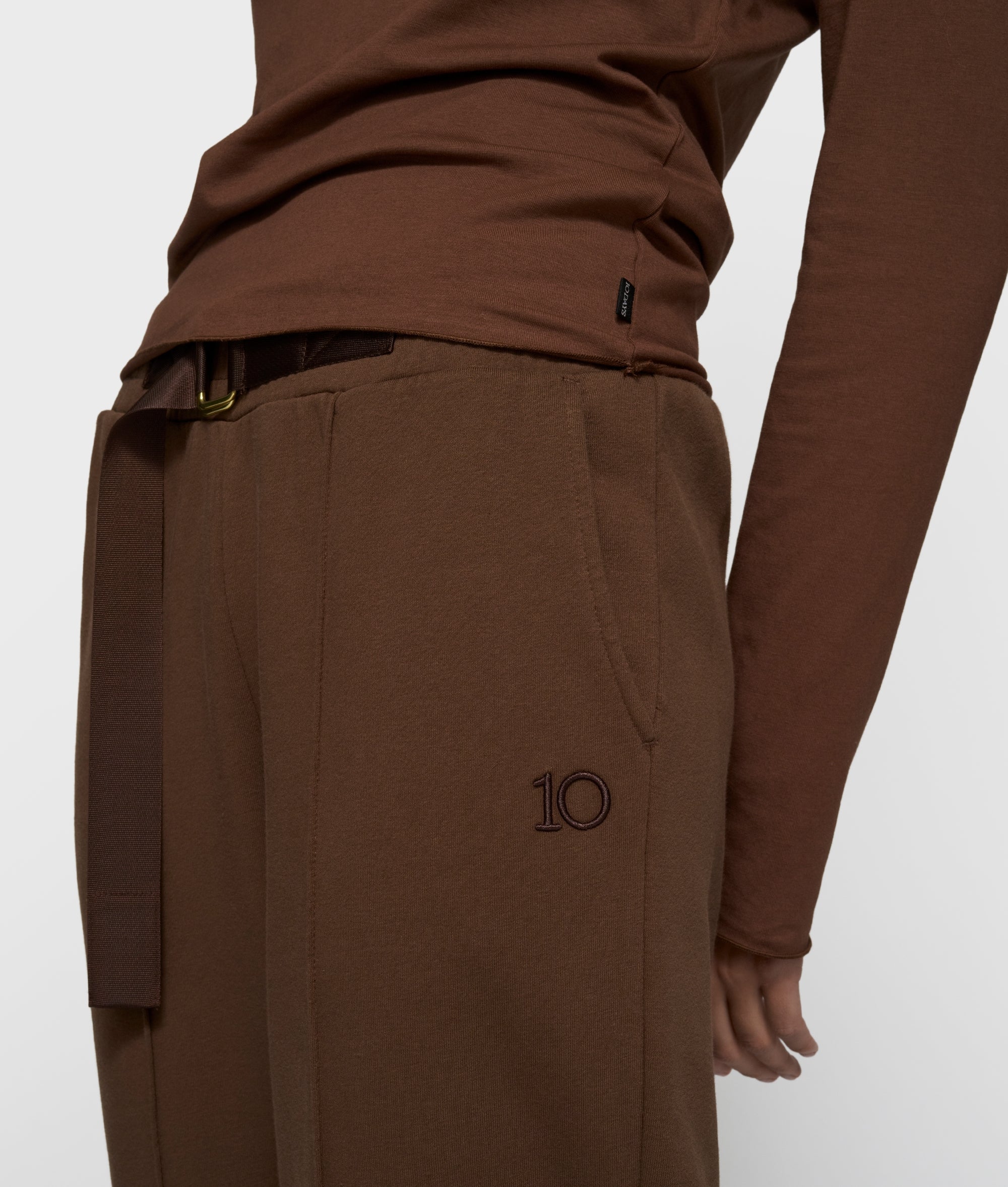 Slim fit longsleeve top, gemaakt met zacht GOTS-gecertificeerd biologisch katoen. Voorzien van een ronde hals, raw edge zoom en manchetten en een 'curly 10' borduring op de borst.
