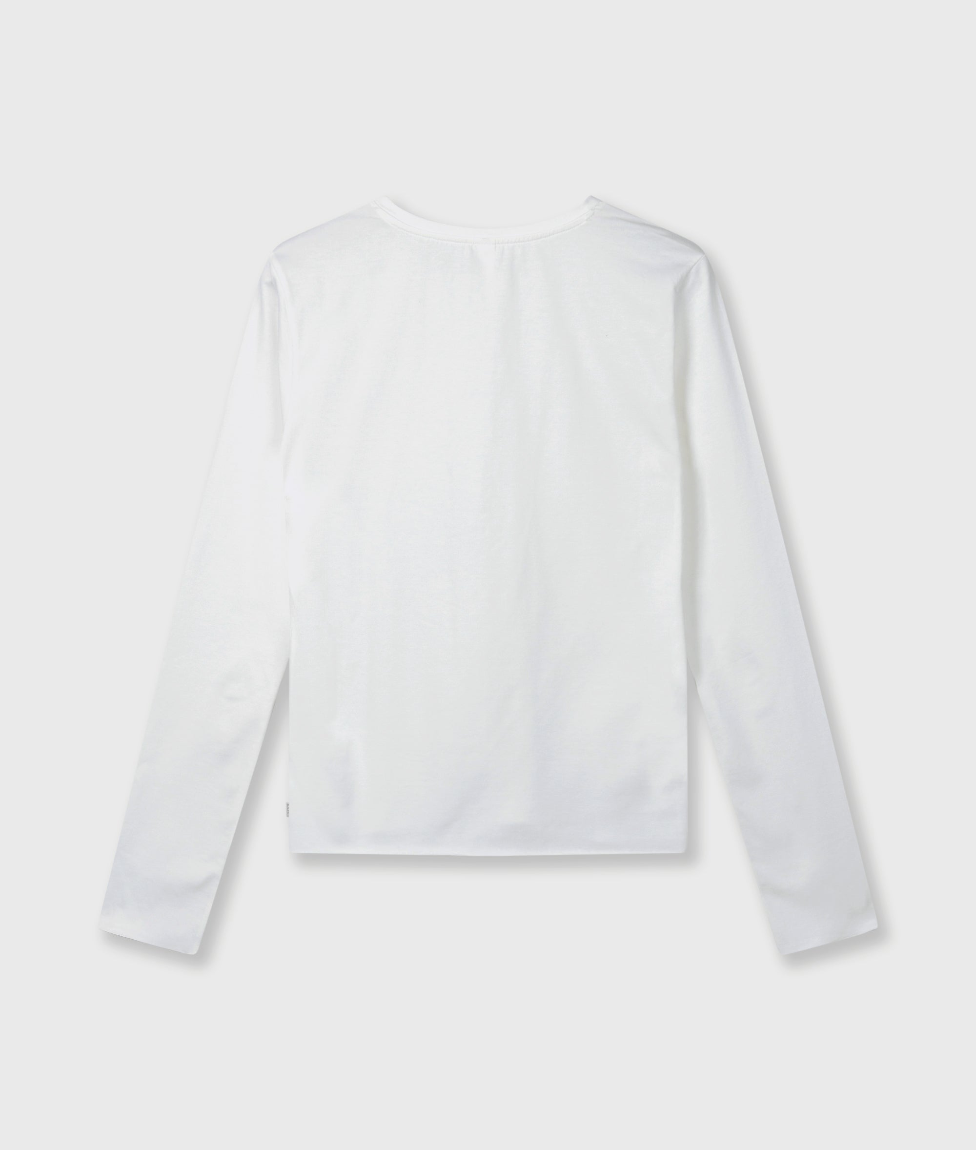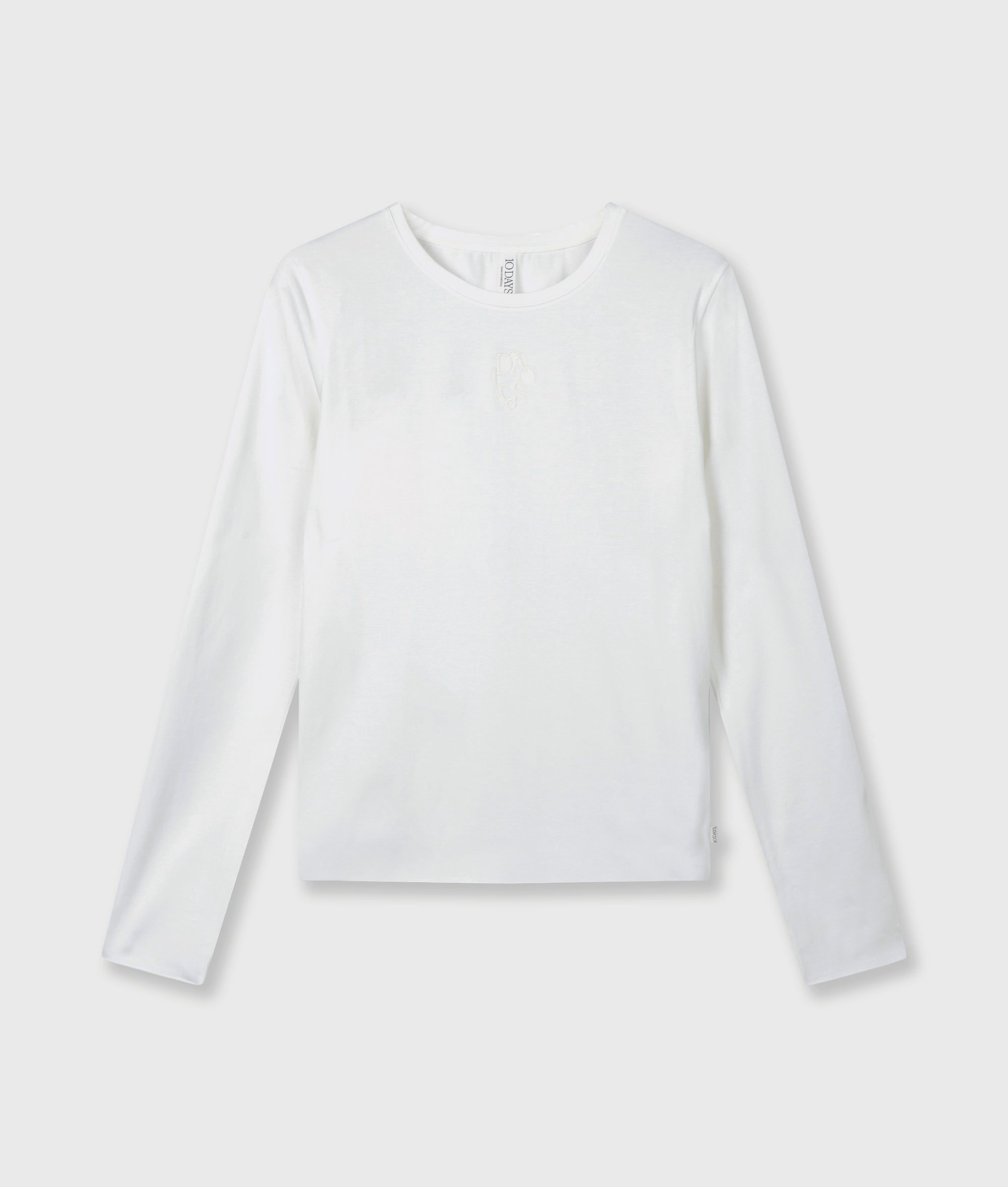 Slim fit longsleeve top, gemaakt met zacht GOTS-gecertificeerd biologisch katoen. Voorzien van een ronde hals, raw edge zoom en manchetten en een 'curly 10' borduring op de borst.