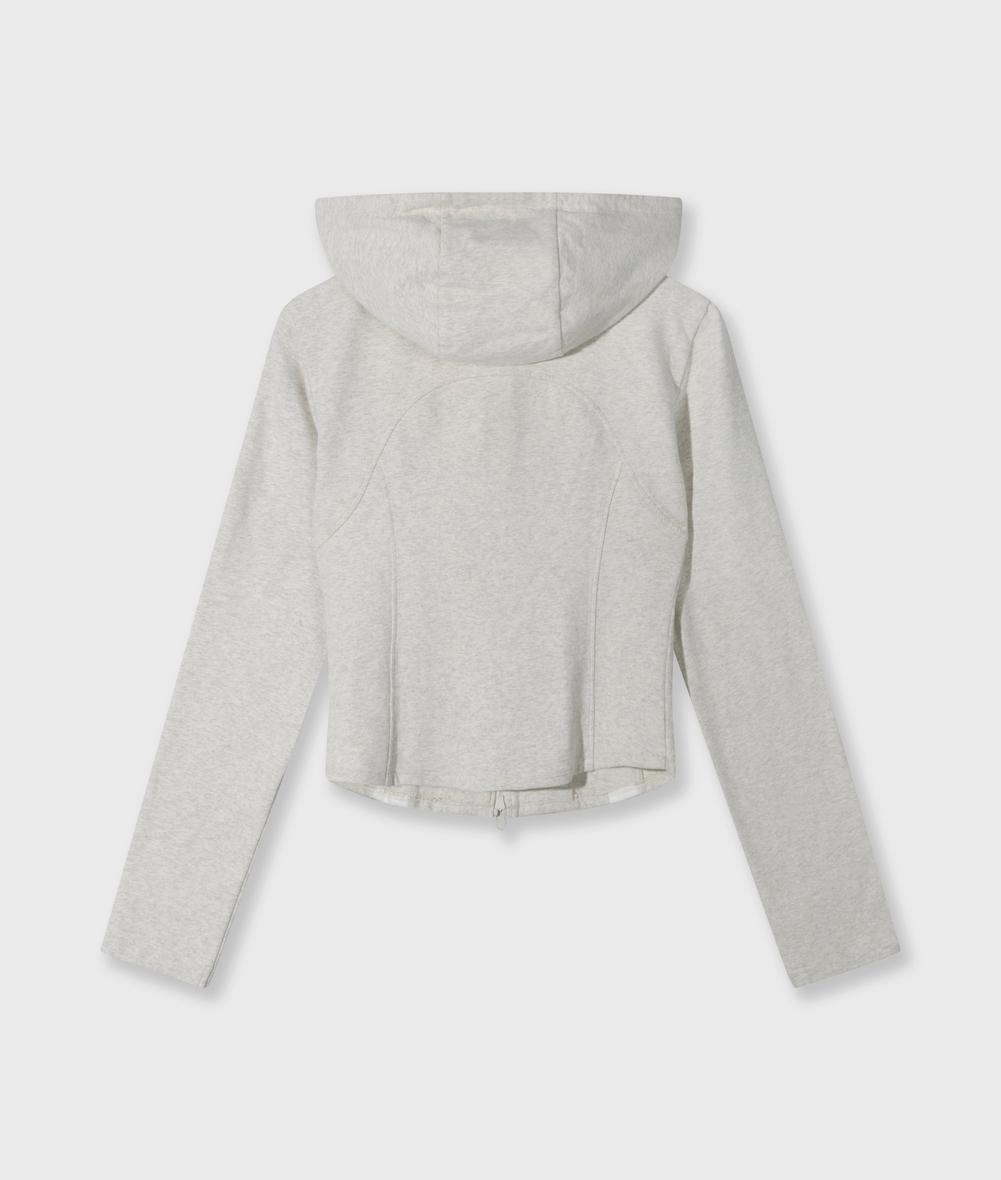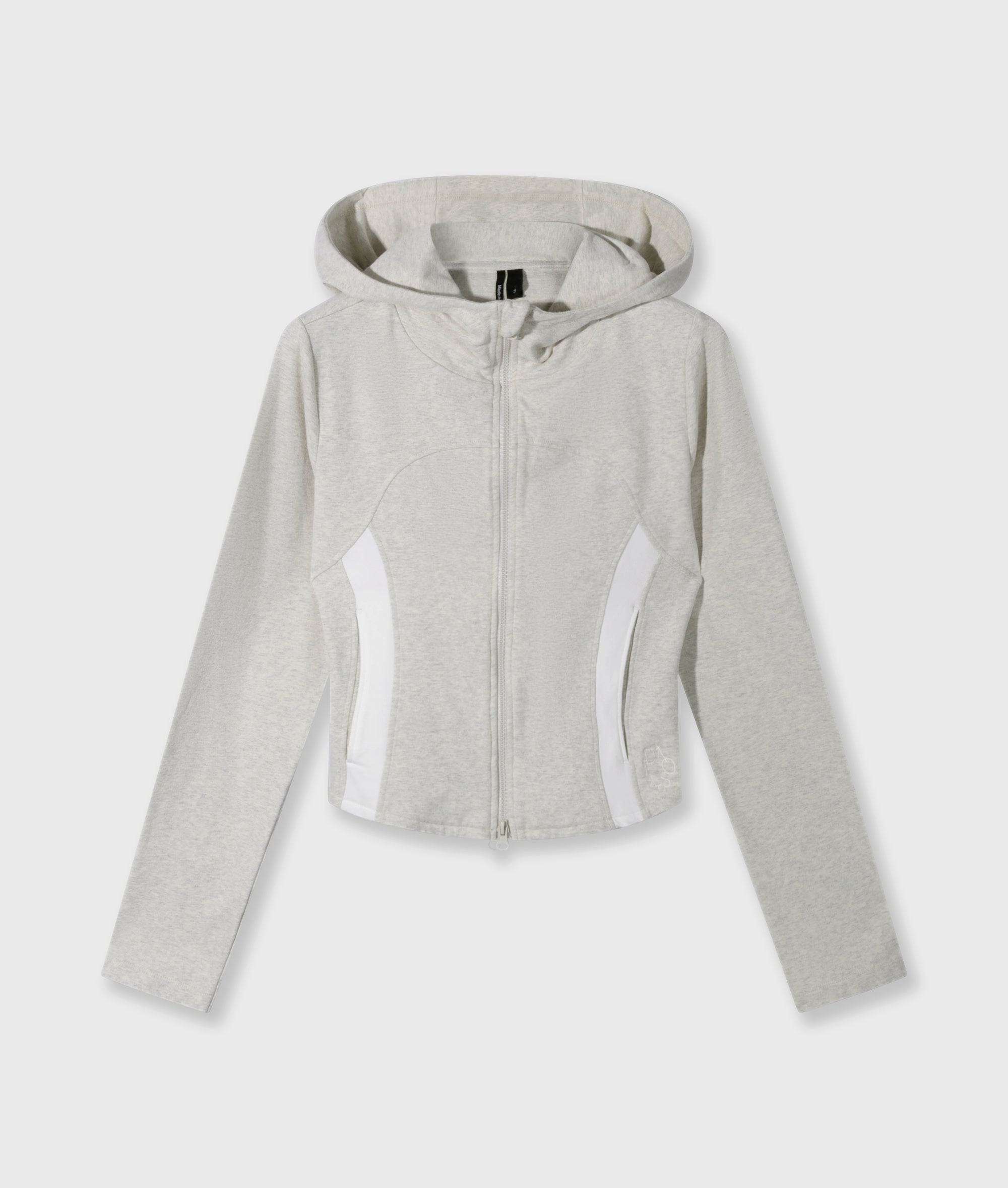 Slim fit hoodie met rits, gemaakt van zacht GOTS-gecertificeerd biologisch katoen. Voorzien van een capuchon, contrastpanelen aan de zijkanten en op de rug, steekzakken en een ‘curly 10’ borduring op de linkerzijde.