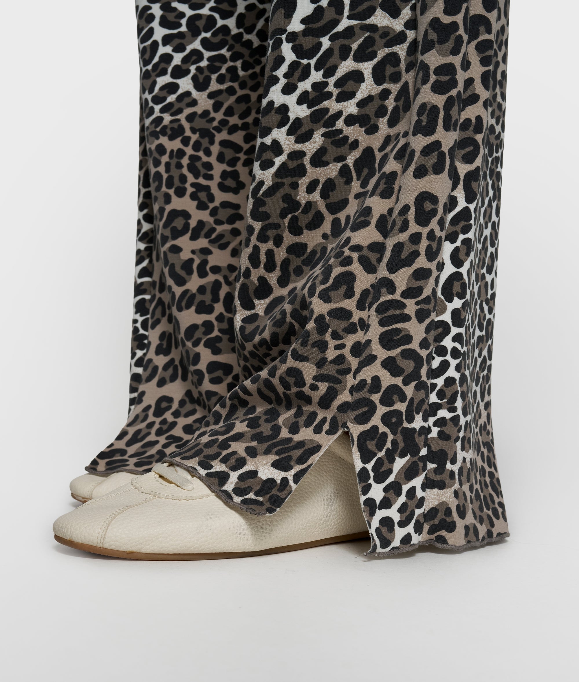 Relaxed fit broek met leopardprint, gemaakt van zachte scuba. Voorzien van een elastische tailleband met trekkoord, steekzakken, kleine splitjes in de pijpen, een neppe achterzak en een '10' monogram foilprint onder de linkerzak.