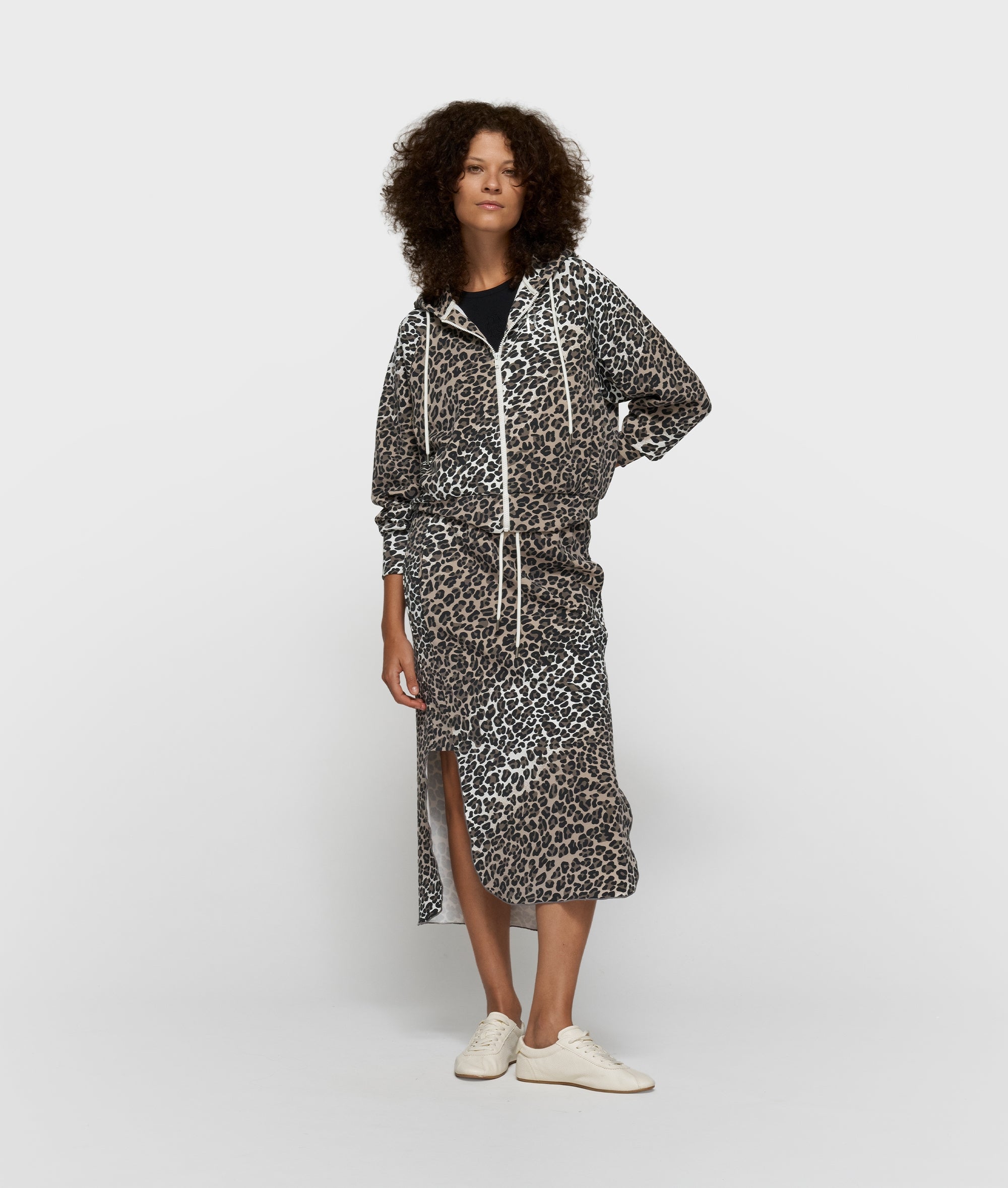Regular fit midi-rok met leopardprint, gemaakt van zachte scuba. Voorzien van een elastische tailleband met trekkoord, steekzakken en een '10' monogram foilprint onder de linkerzak.