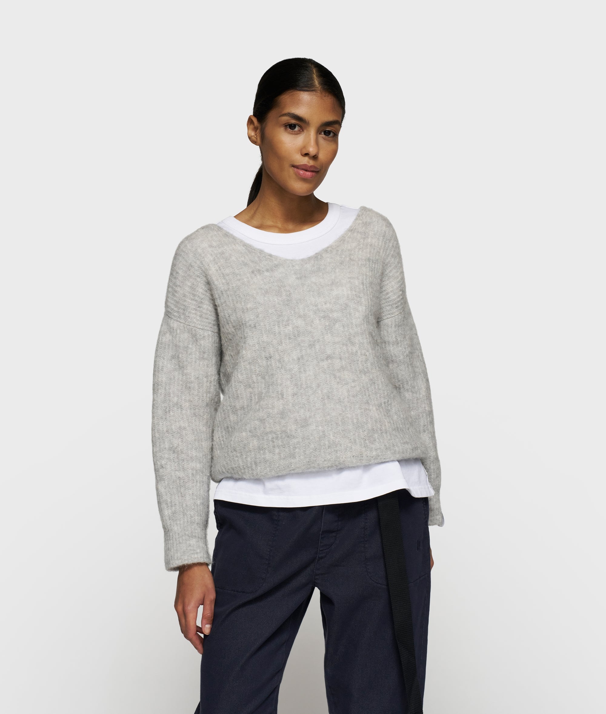 Regular fit gebreide trui met v-hals, gemaakt van een zachte alpaca wolblend. Voorzien van ribgebreide zoom en manchetten, een tagline label onderaan de linkermouw en een '10' monogram borduring op de rug.