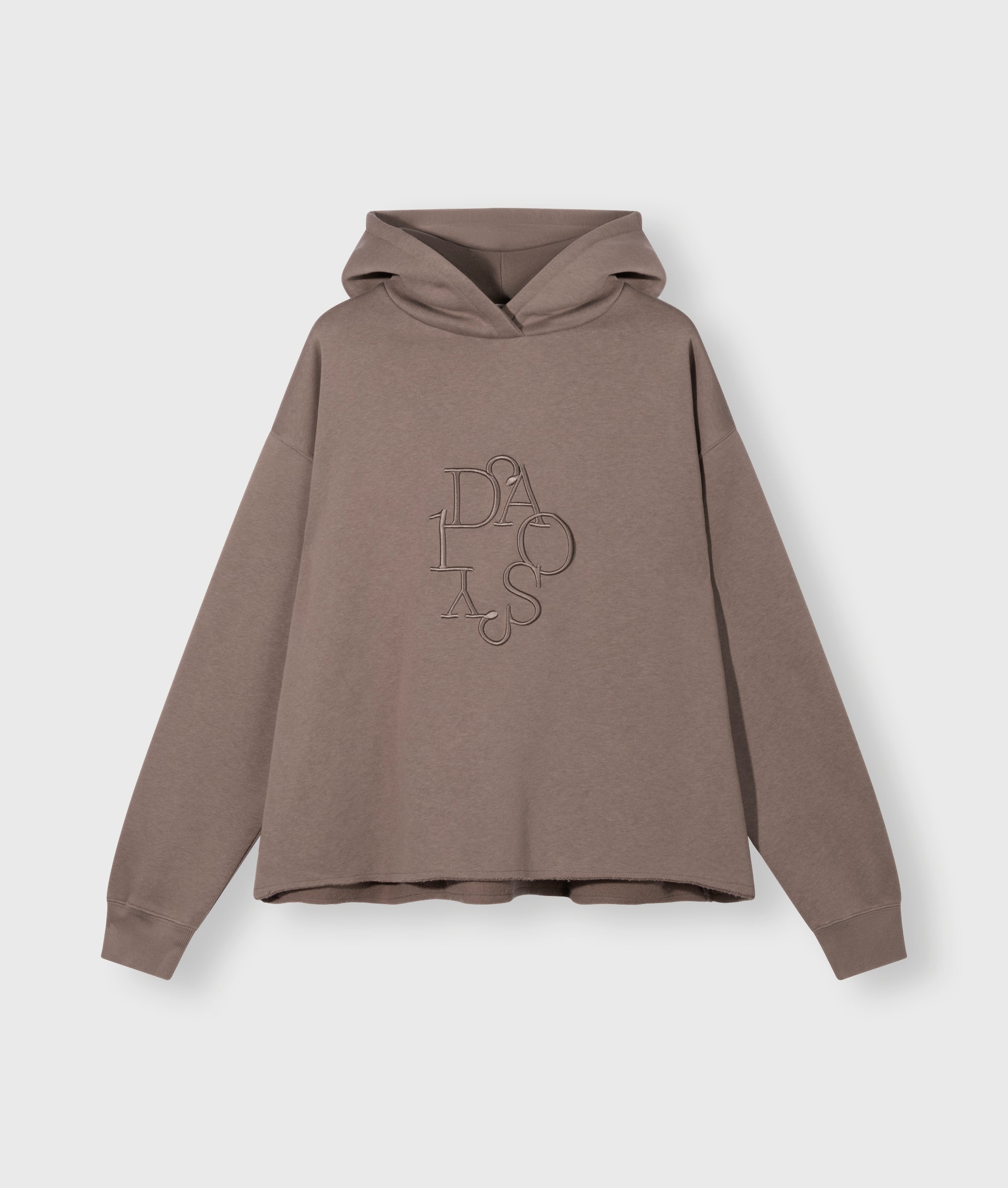 Oversized fit statement hoodie, gemaakt van dik geborsteld fleece. De sweater is voorzien van een 'curly 10' borduring op de borst, een capuchon, raw edge zoom en ribgebreide manchetten.