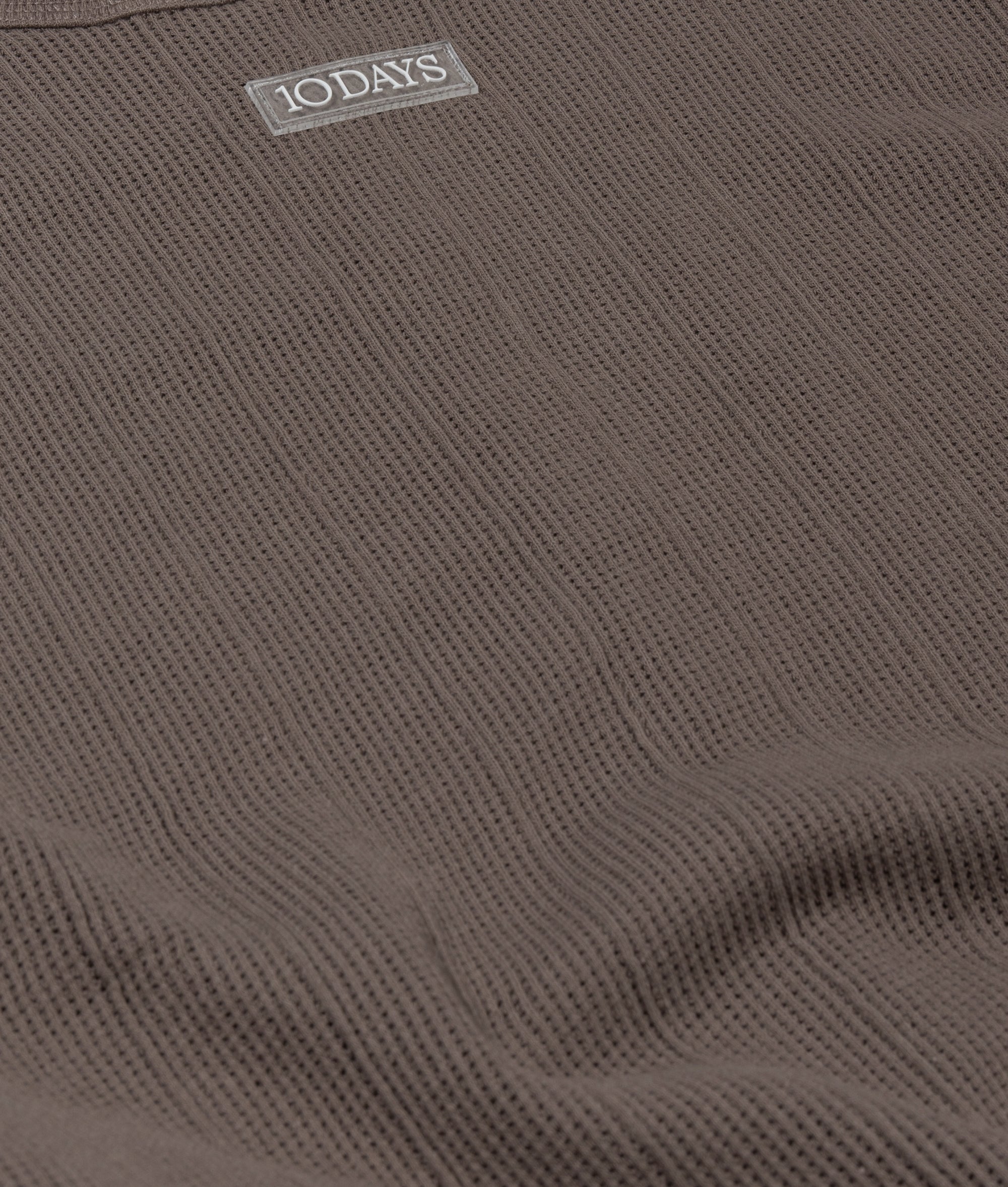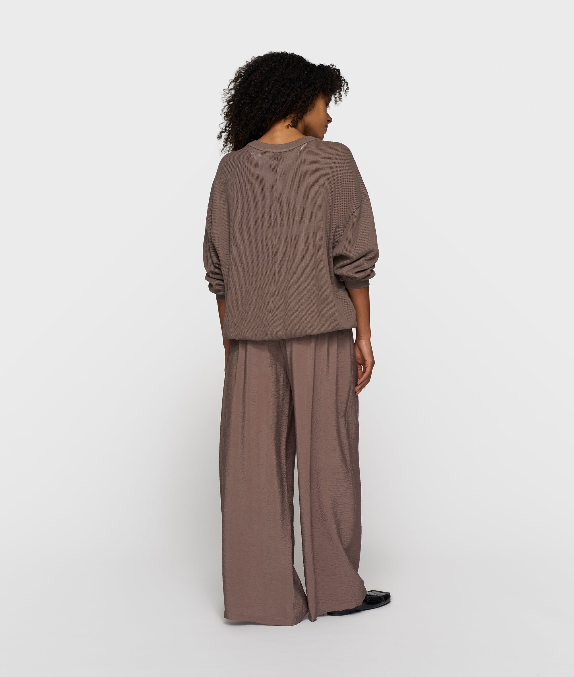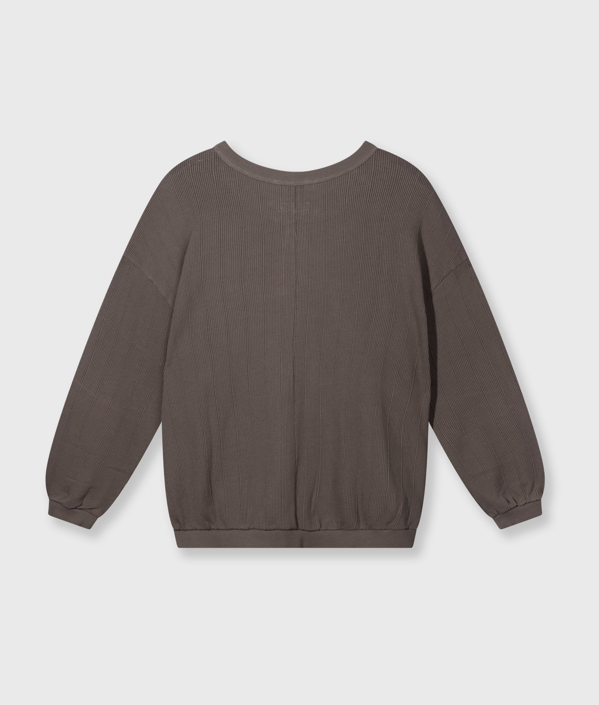 Relaxed fit sweater, gemaakt van zacht GOTS-gecertificeerd biologisch katoenen mesh. Voorzien van een ribgebreide ronde hals, een lage schouderinzet, een geplooide zoom en een klein ‘10DAYS’ label onder de hals.