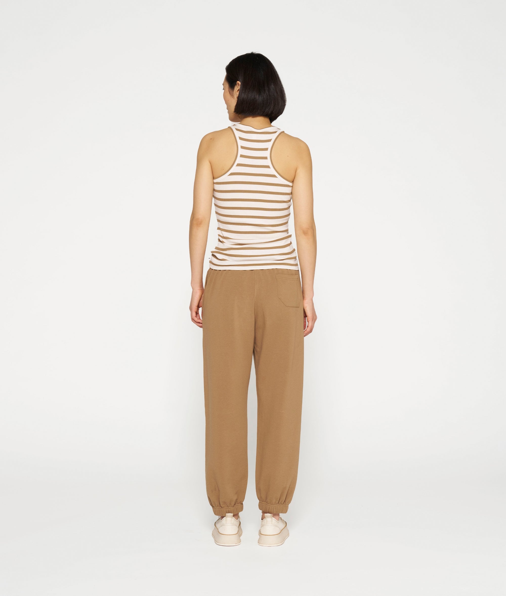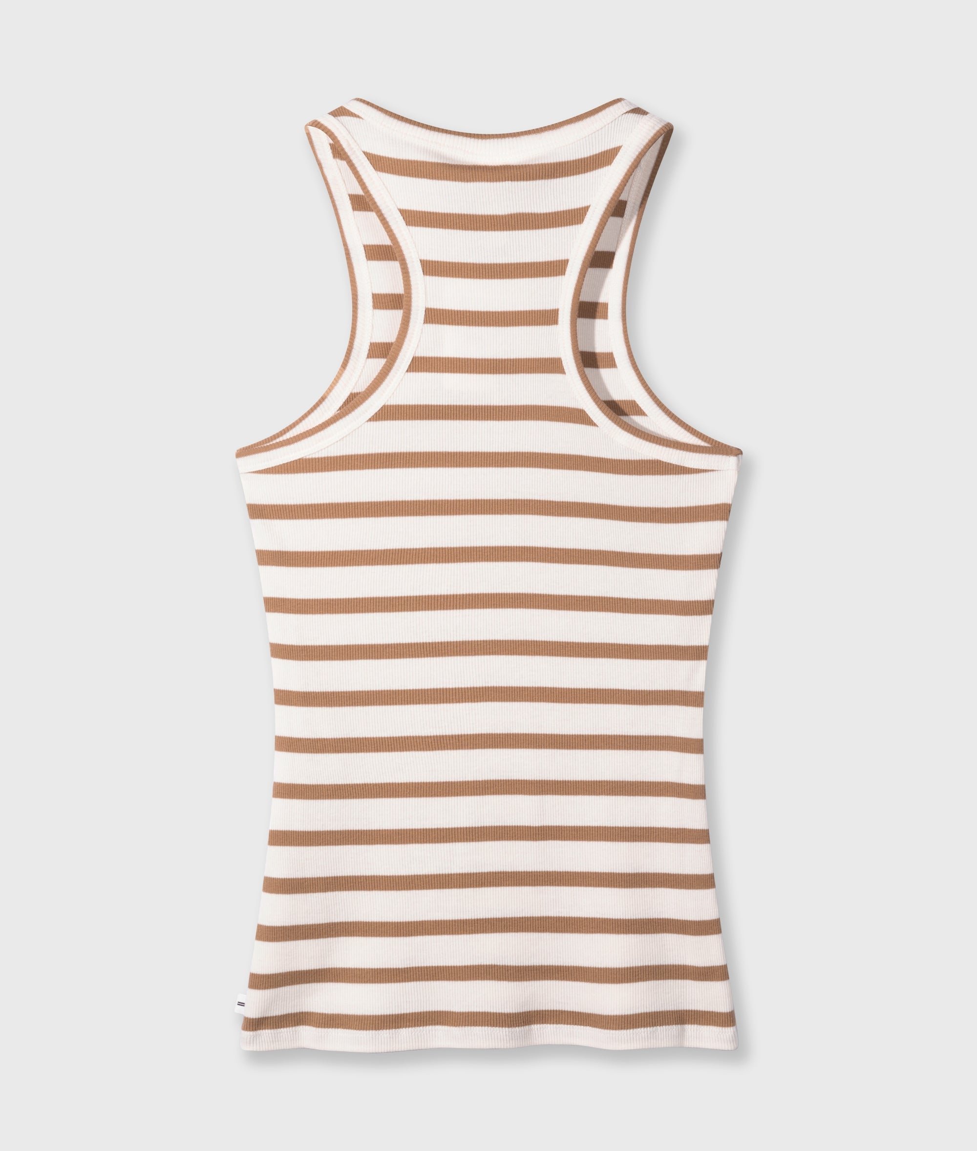 Slim fit tank top van biologisch katoenen ribjersey. Voorzien van een mini stripes logo patch op de borst en rib gebreide boorden rond de hals.