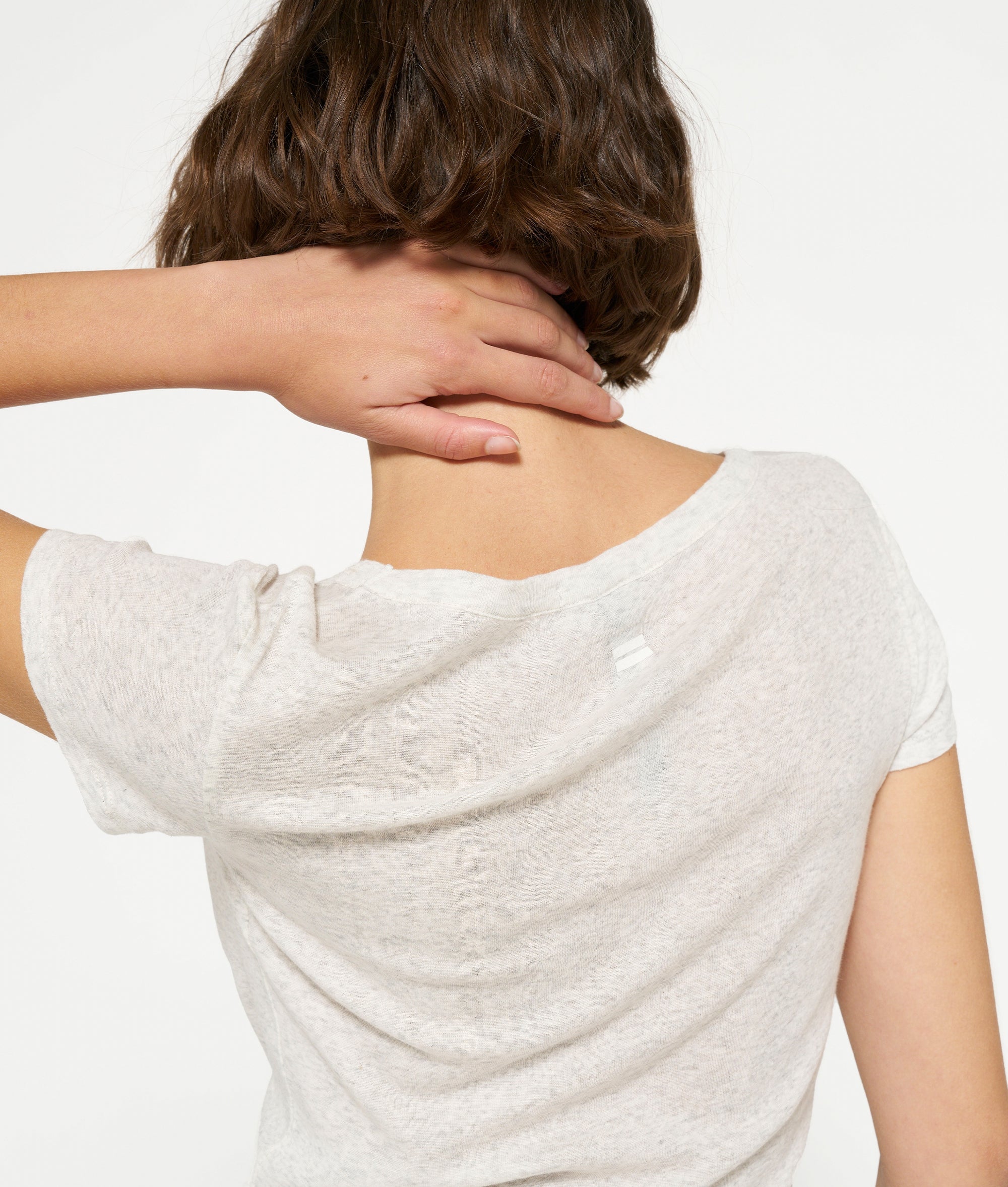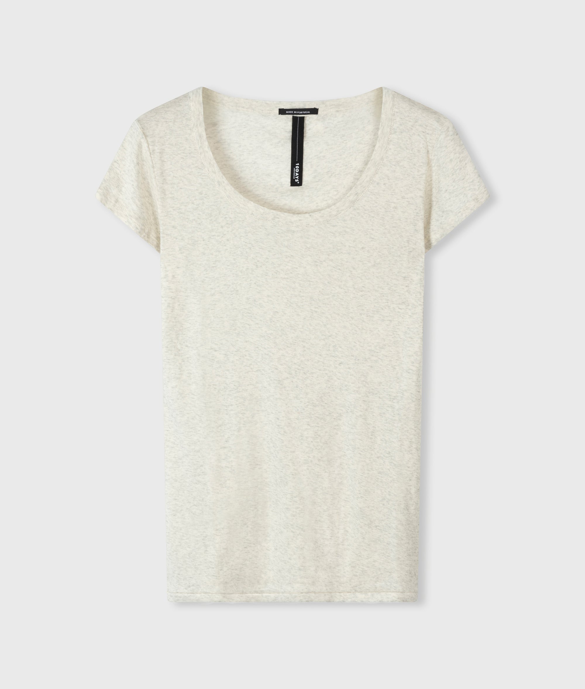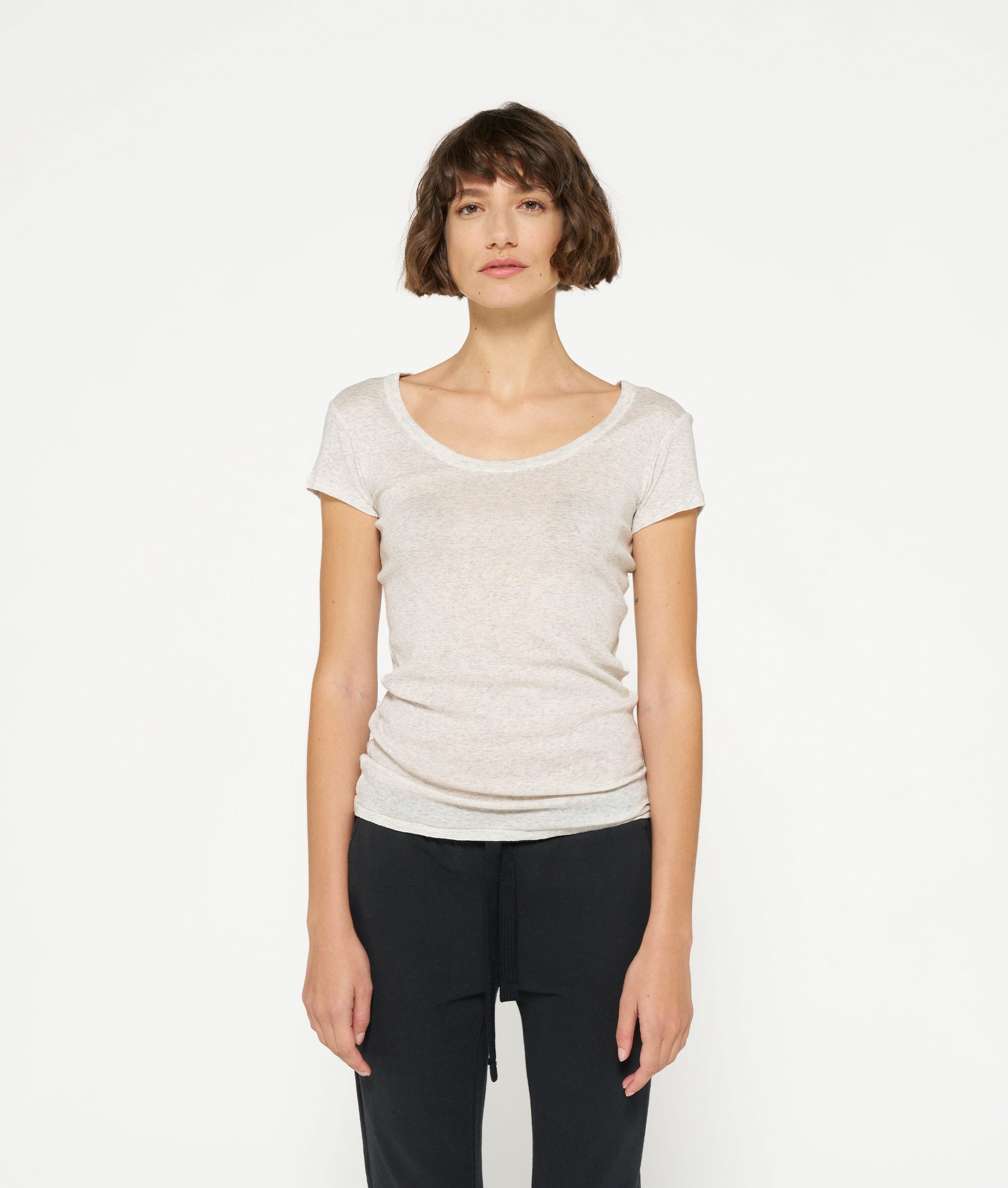 Slim fit t-shirt van fijn ribjersey. Voorzien van een ronde hals en een mini stripes logo op de rug, net onder de neklijn.