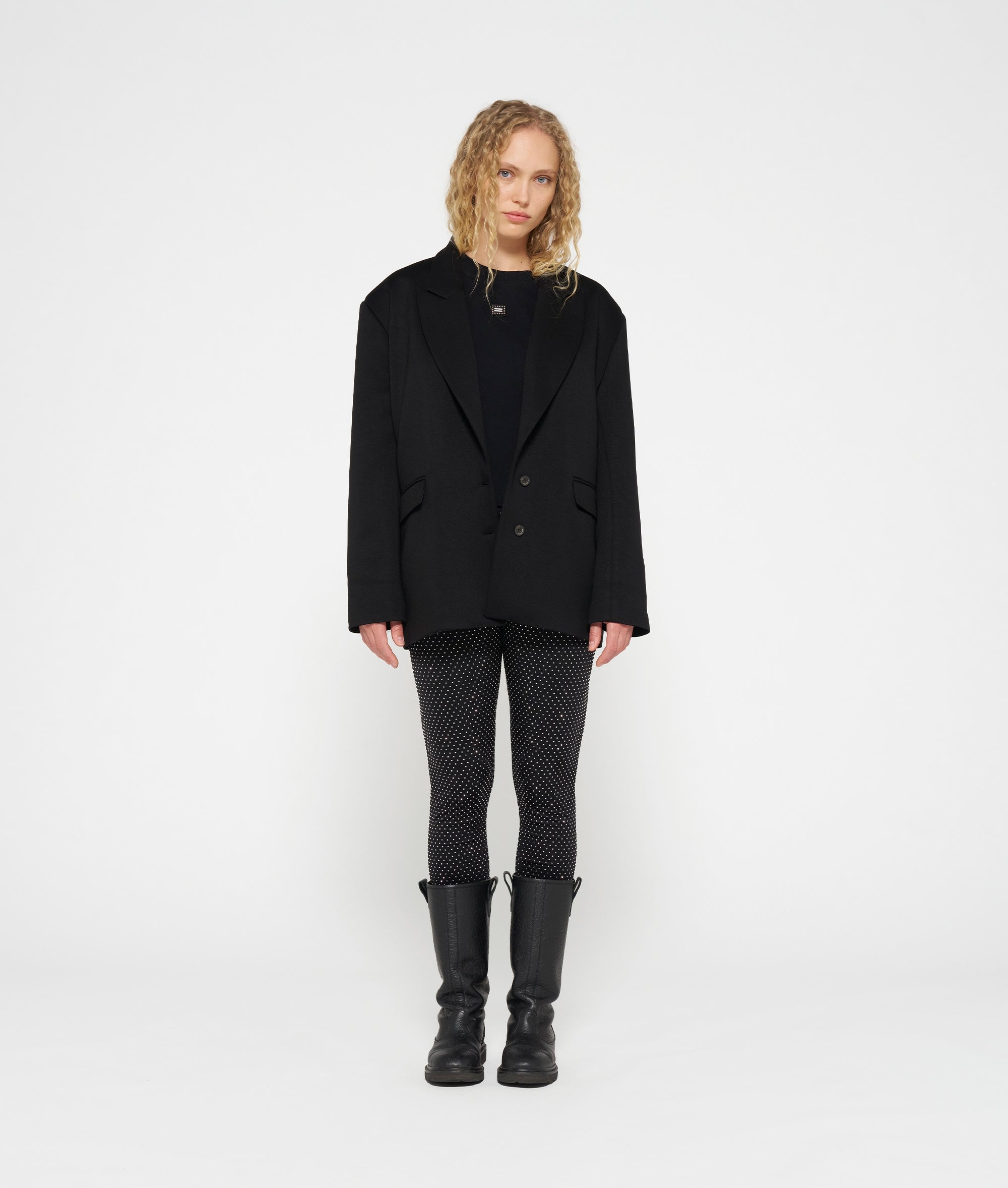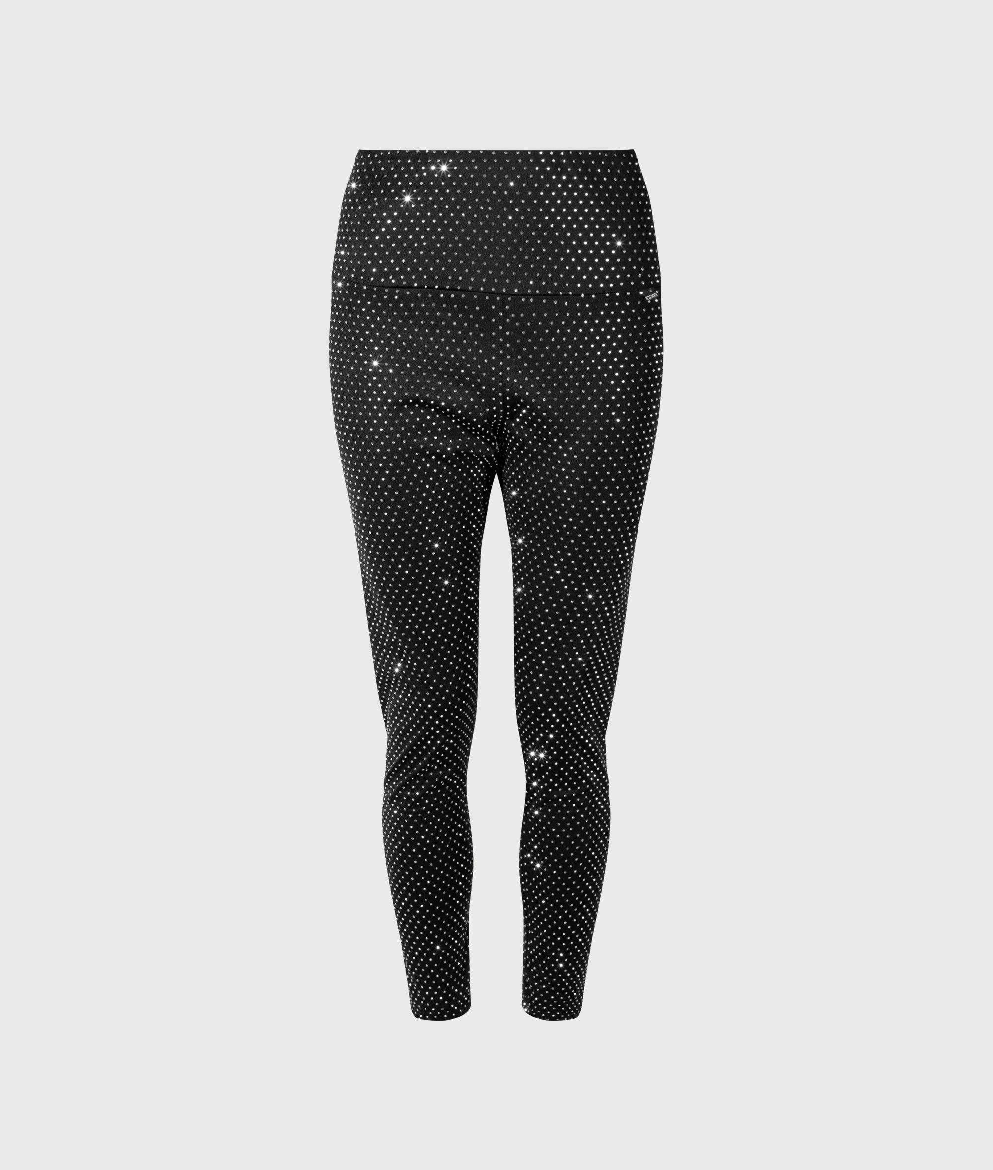 Slim fit strass legging, gemaakt van polyamide en elastane bedekt met strassstenen. Voorzien van een elastische tailleband en overlock stiksels.