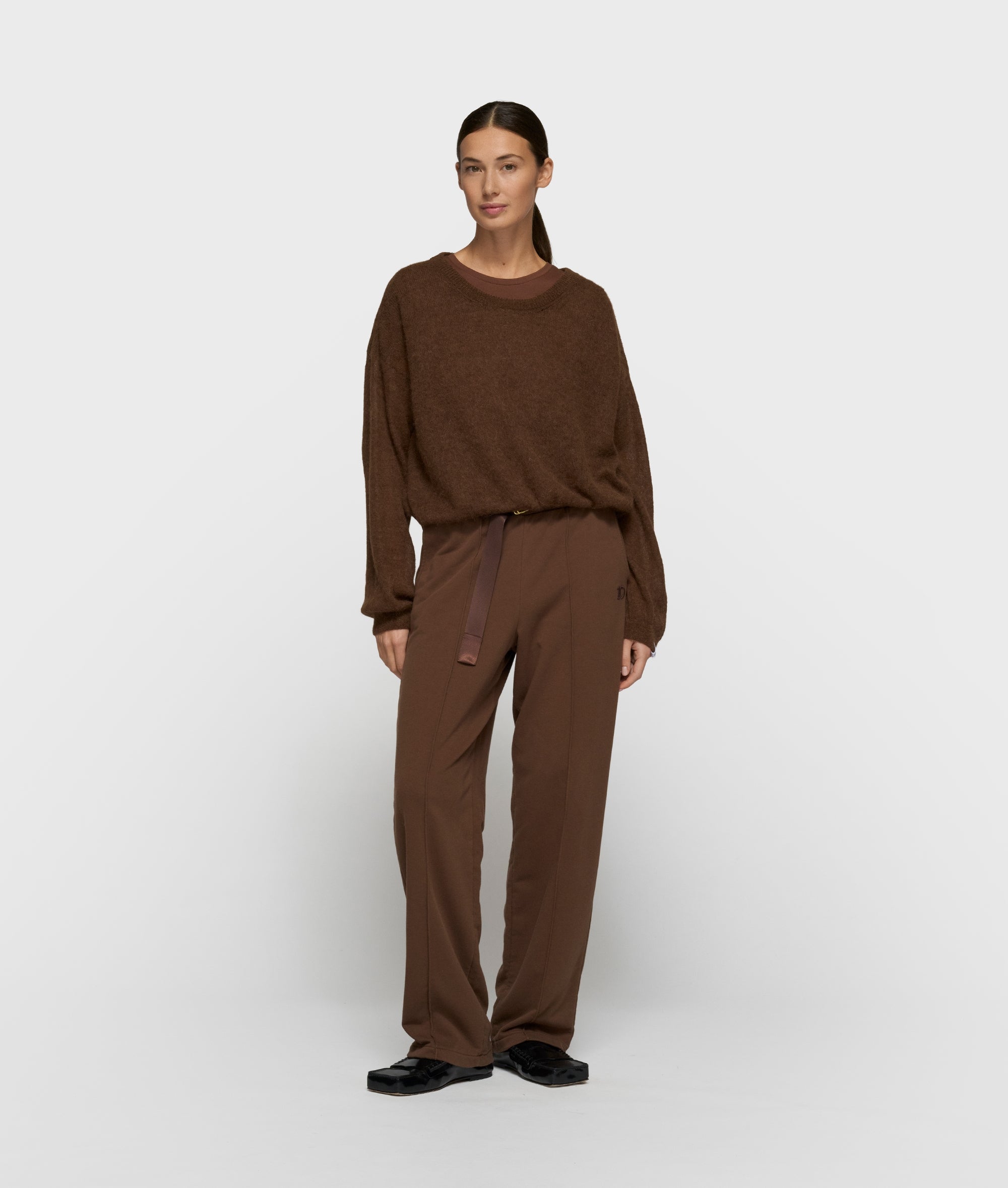 Relaxed fit dun gebreide trui, gemaakt van een fijne alpacawolblend. Voorzien van een ribgebreide ronde hals, manchetten en zoom, en een '10' monogram borduring op de rug.
