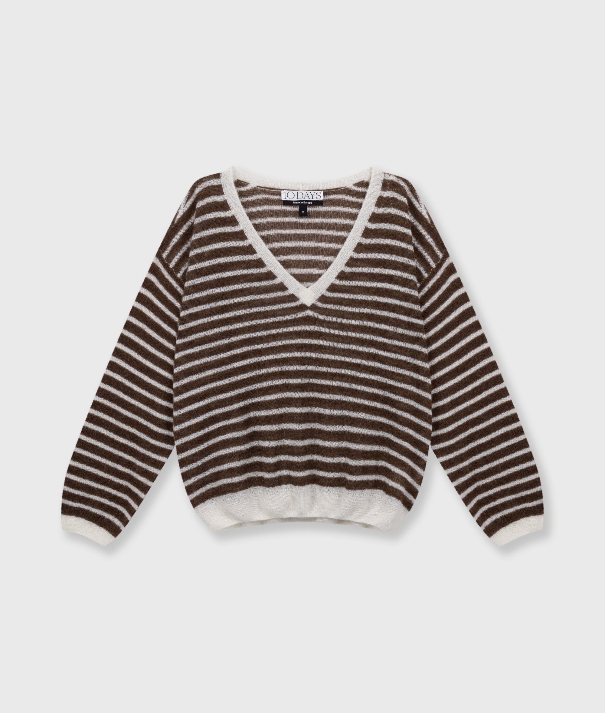 Relaxed fit dun gebreide trui met V-hals, gemaakt van een fijne alpaca wolblend. Voorzien van een ribgebreide boorden, een lage schouderinzet en een '10' monogram borduring op de rug.