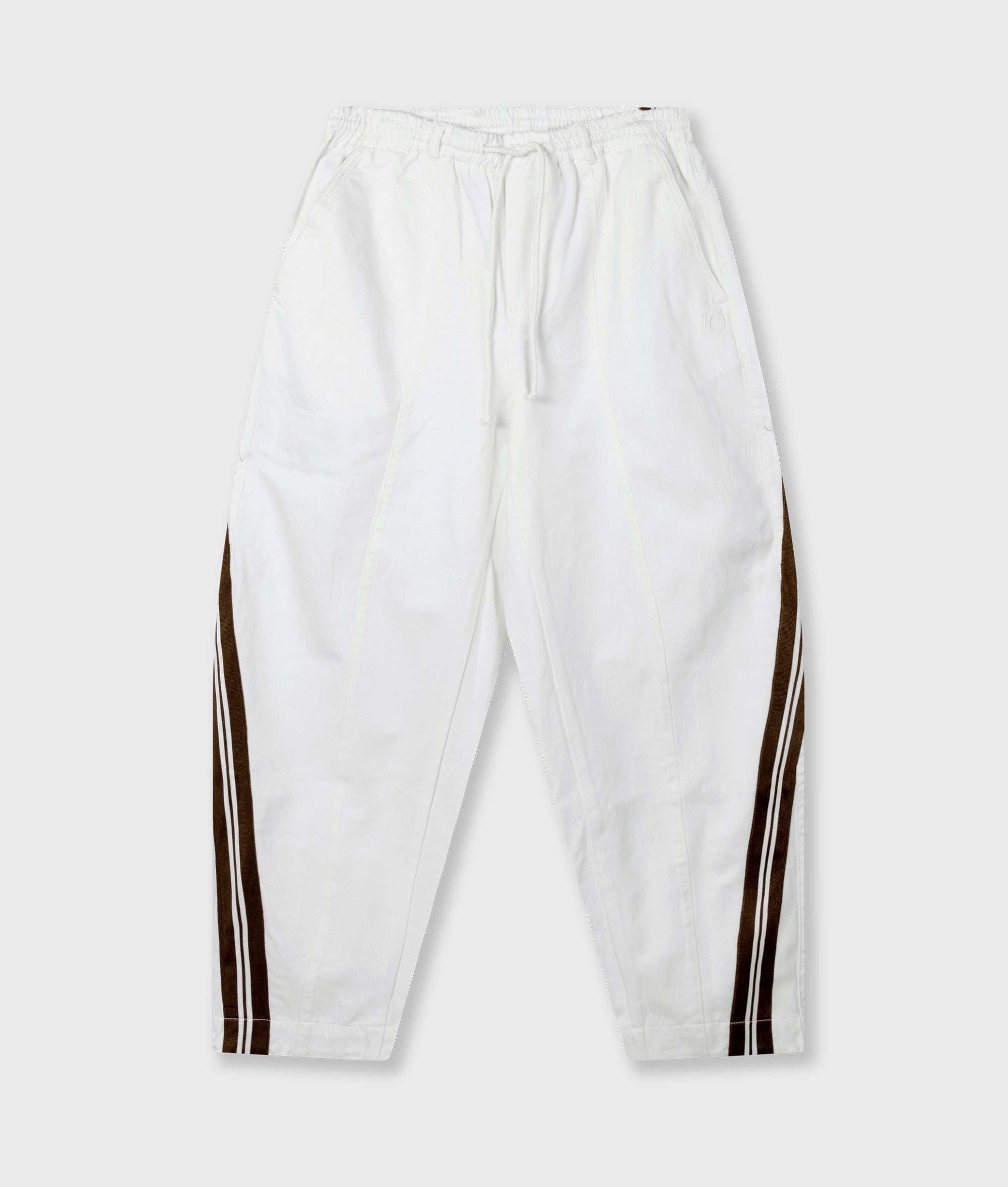 Regular fit mid-waist broek, gemaakt van GOTS-gecertificeerd biologisch katoen. Voorzien van een elastische tailleband met trekkoord, schuine steekzakken, tapestroken langs de zijnaden, een opgestikte achterzak en een ‘10’ monogram borduring onder de linkerzak.